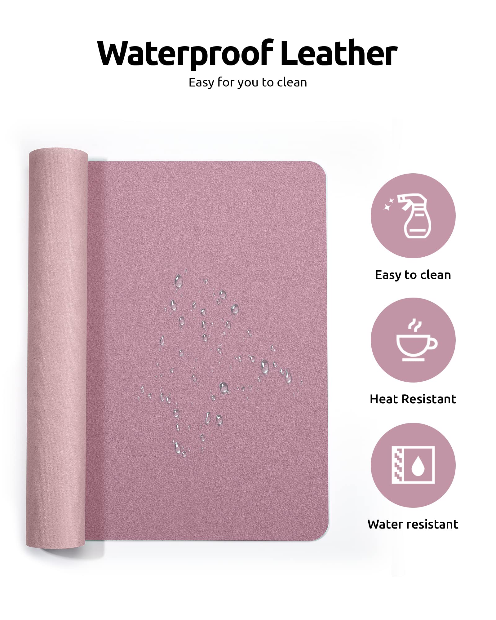 EASY TO CLEAN: Waterproof leather desk pad. Just use cloth for basic clean: liquid, dust, grease and dirt. Wet cloth would be prefer if there are too much dirt in the desk mat.