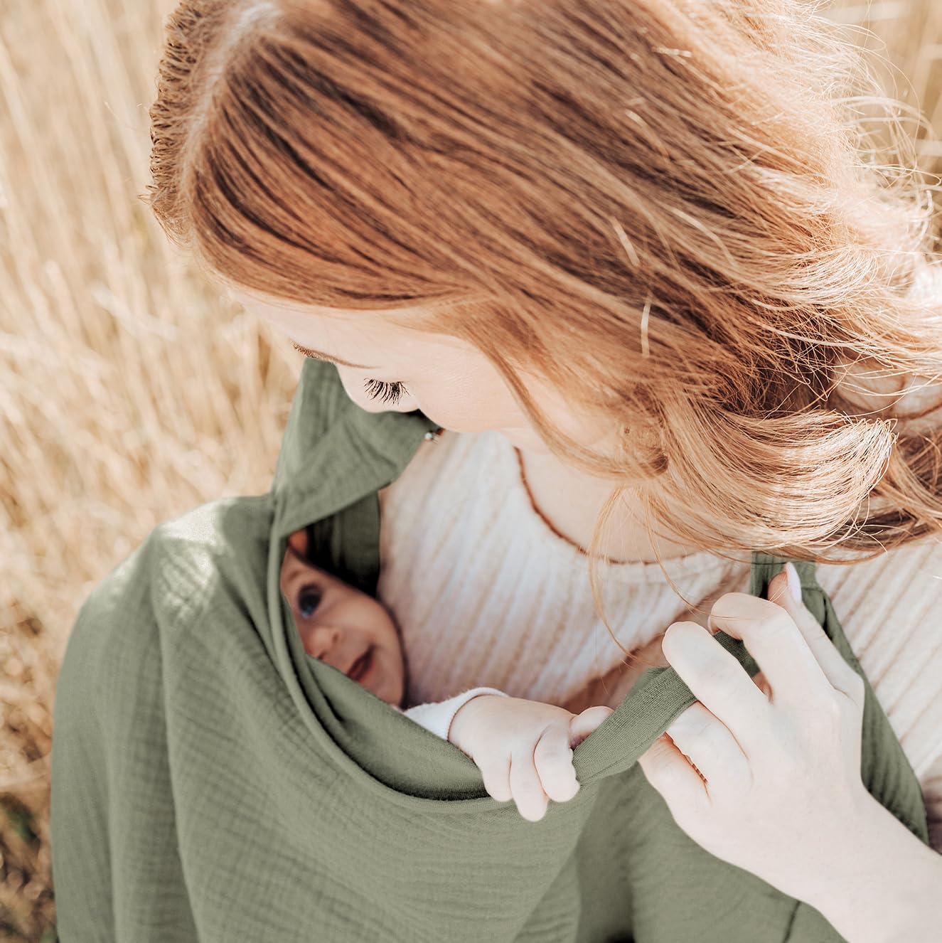 Premium Fabric: Nursing cover for breastfeeding are made of 100% cotton (Muslin) for maximum breathable with skin-friendly soft touch and retain its color after washed for several times. It makes both mothers and babies feel comfortable and content during breastfeeding