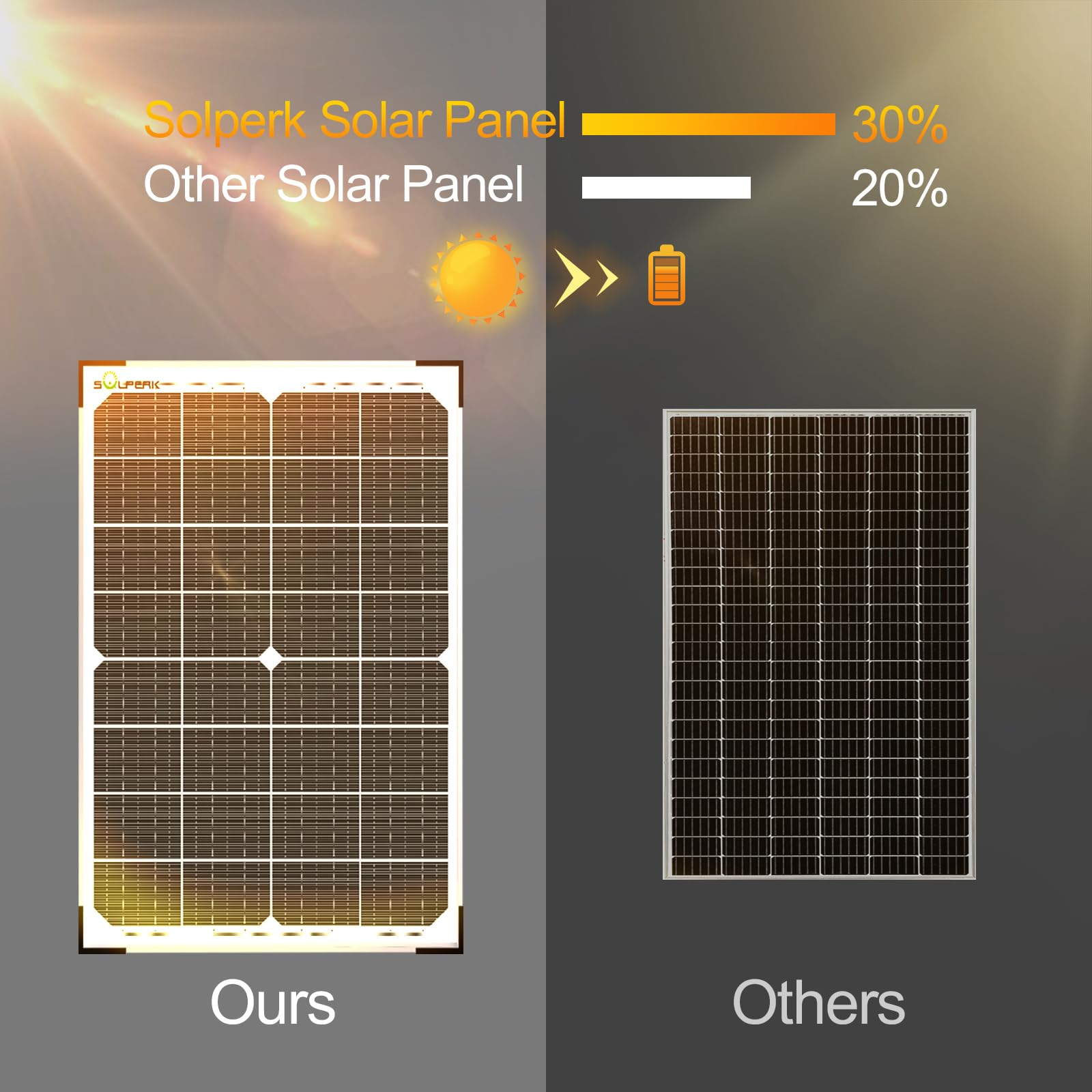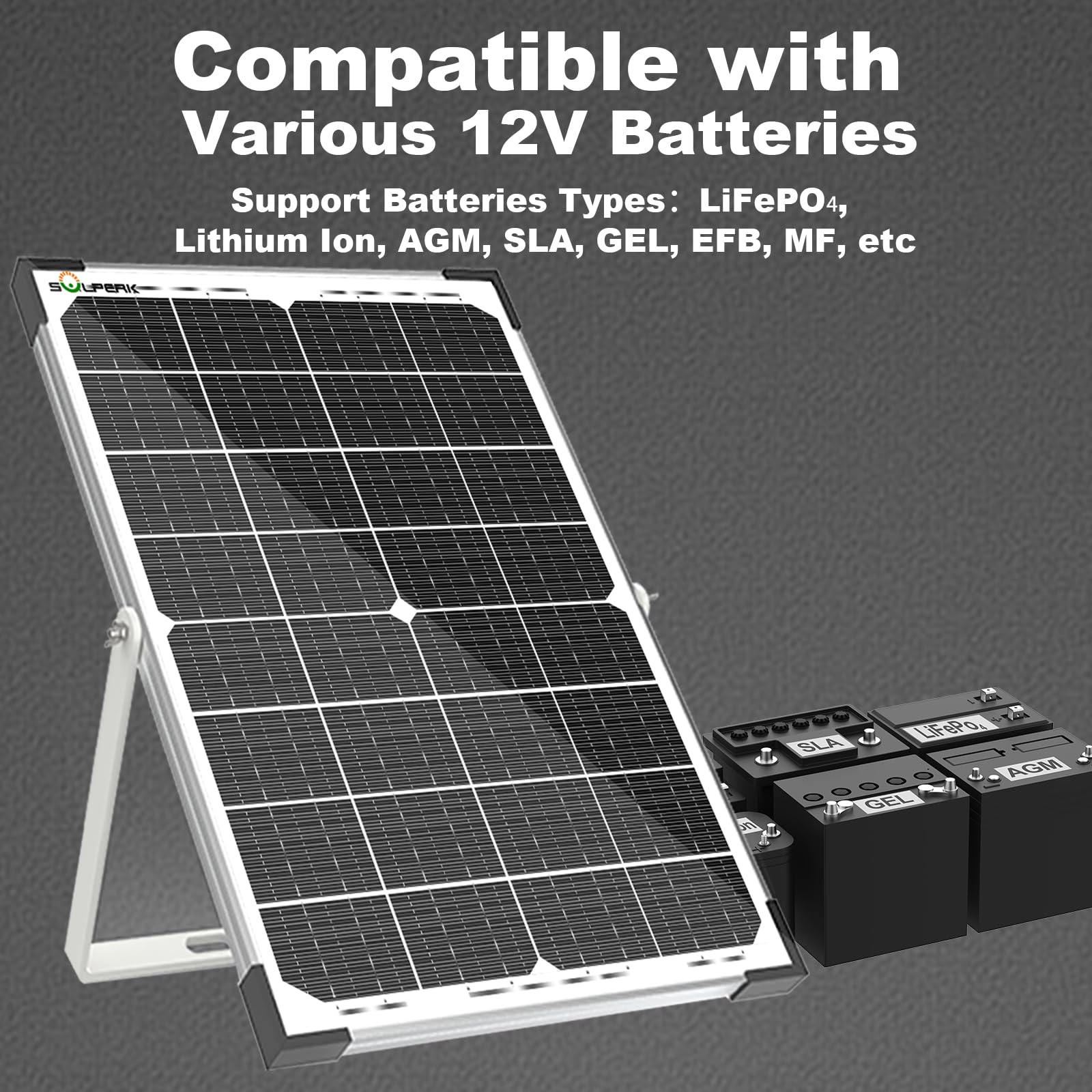 【Advanced monocrystalline silicon】 The 30 watt solar panel uses A+monocrystalline silicon, monocrystalline A+ solar cell has an excellent cell efficiency of 30%。 Solar Charger Kit designed to charge and maintain 12V rechargeable batteries, including LiFePO, with a lifespan of up to 25 years, Lithium Ion, AGM, SLA, GEL, EF.