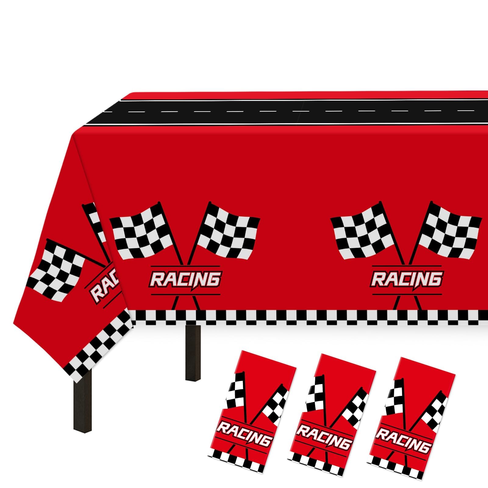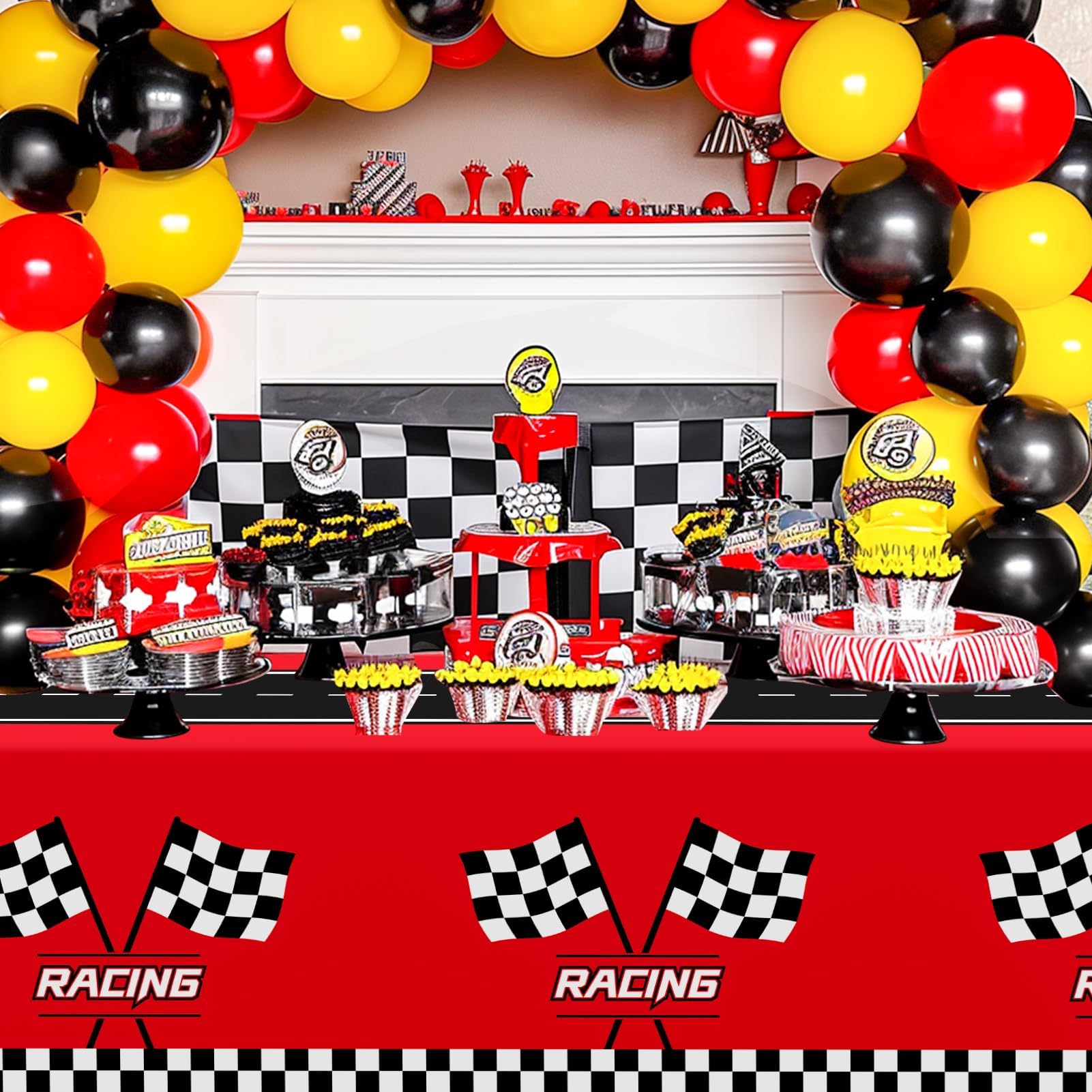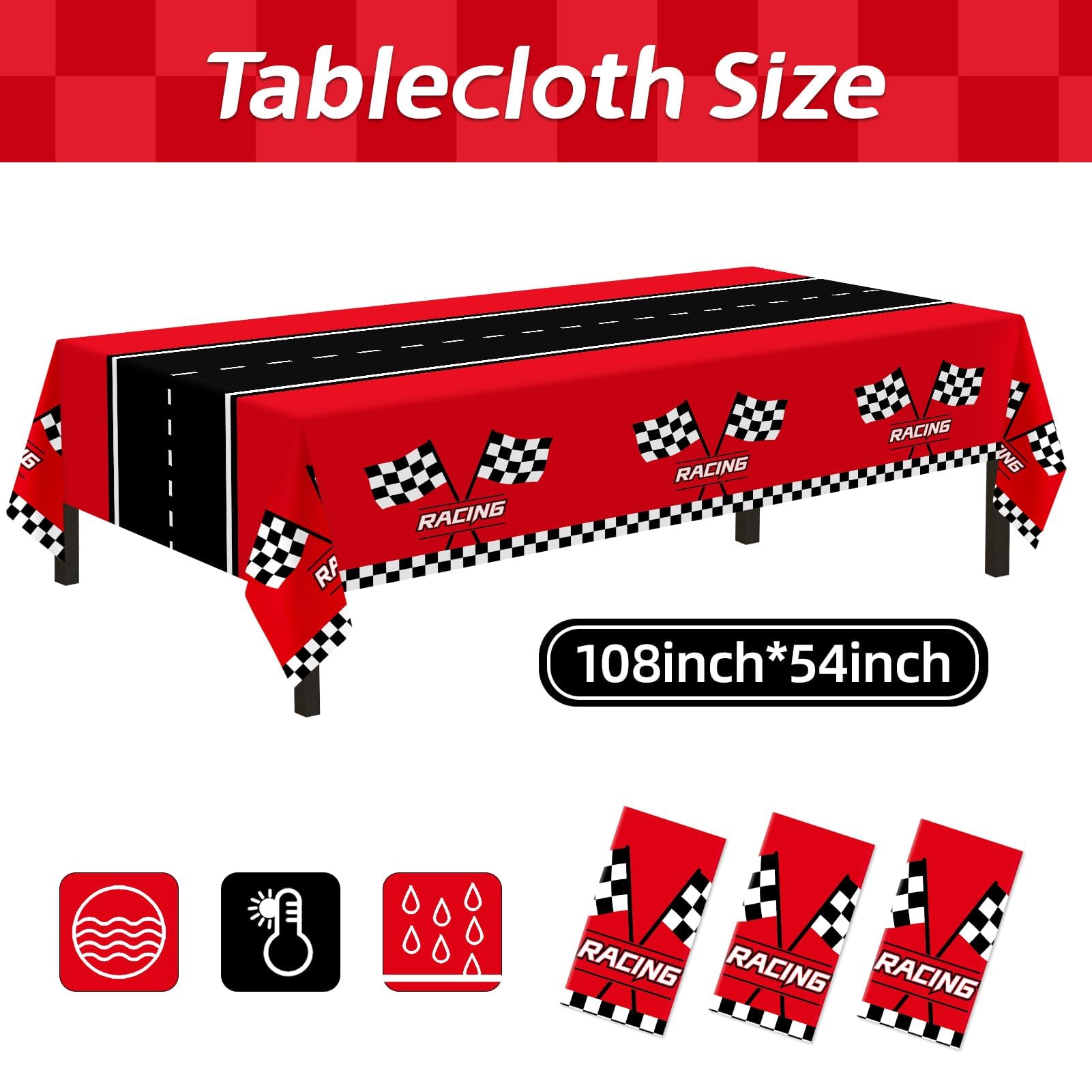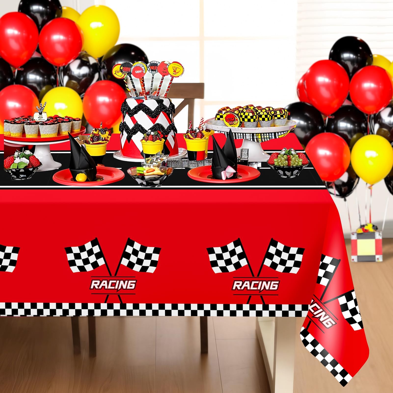 Race Car Birthday Party Decorations: 3Pcs racing car plastic tablecloth, great for car party supplies, car birthday party decorations. The racing checkered design tablecloths with vivid color and classic pattern, which is a great way to create a festival atmosphere. The bright color and classic pattern will light up your party, caught everyone's eyes