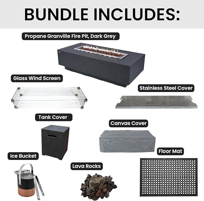 Elegant Outdoor Fire Pit Decor: Transform your backyard with this stylish outdoor fireplace, which includes a canvas cover, lava rocks, and outdoor propane fire pit table. Propane firepit table enhances any patio setting, providing warmth, light, and ambiance. Perfect addition to your patio furniture decor and adding elegance to your outdoor space.