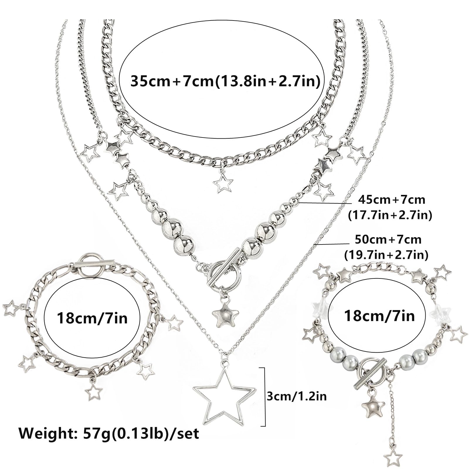 【Star Necklace】The chunky necklace set features a sparkling silver star pendant and a delicate chain, adding a touch of elegance and charm to your outfit. The star pendant is designed to catch the light and sparkle, making you more attractive.