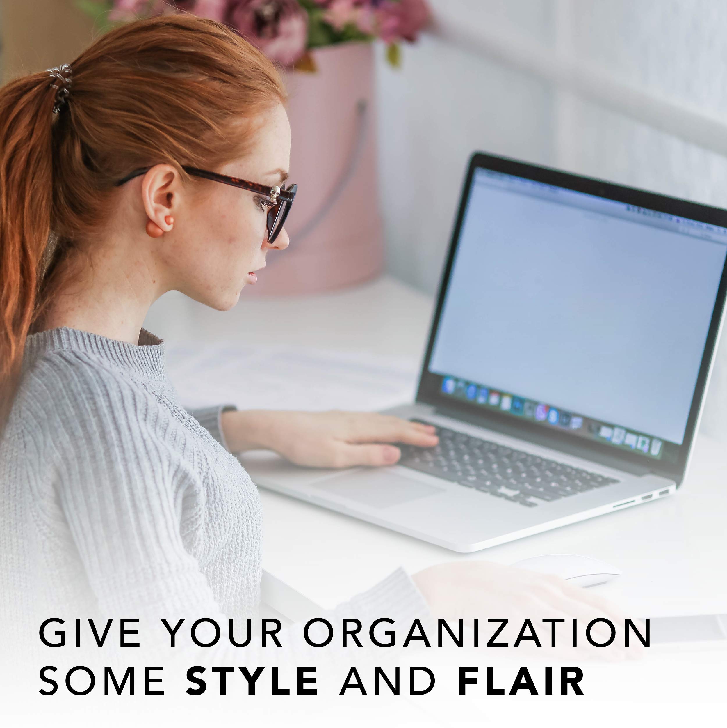 DESIGNER STYLE Say goodbye to boring manila folders by accessorizing your desk with this colorful, chic set of files. These fashionable folders come in an assortment of colors, patterns, and phrases. Decorative office supplies make great gifts for friends, family, and co-workers.