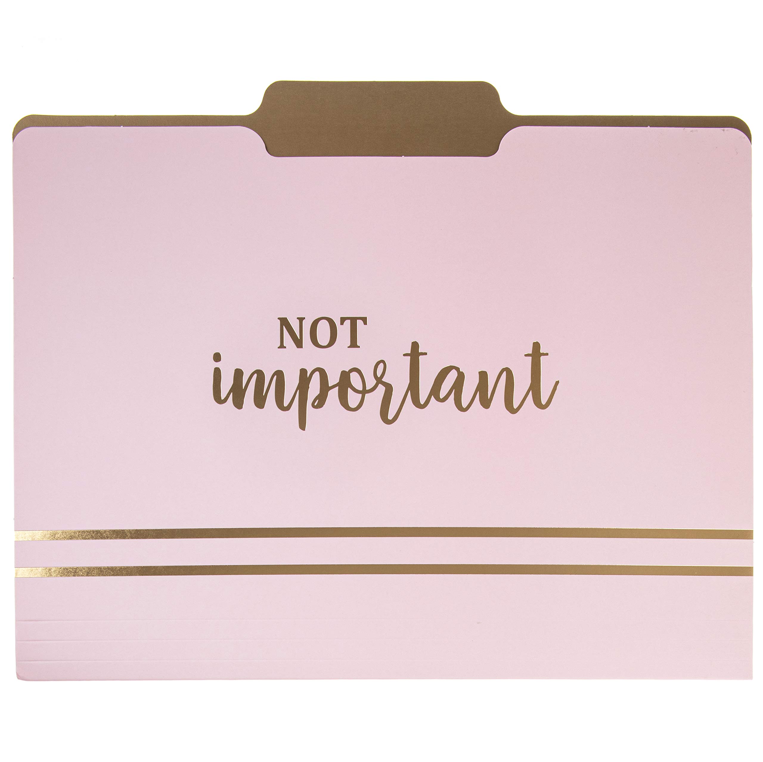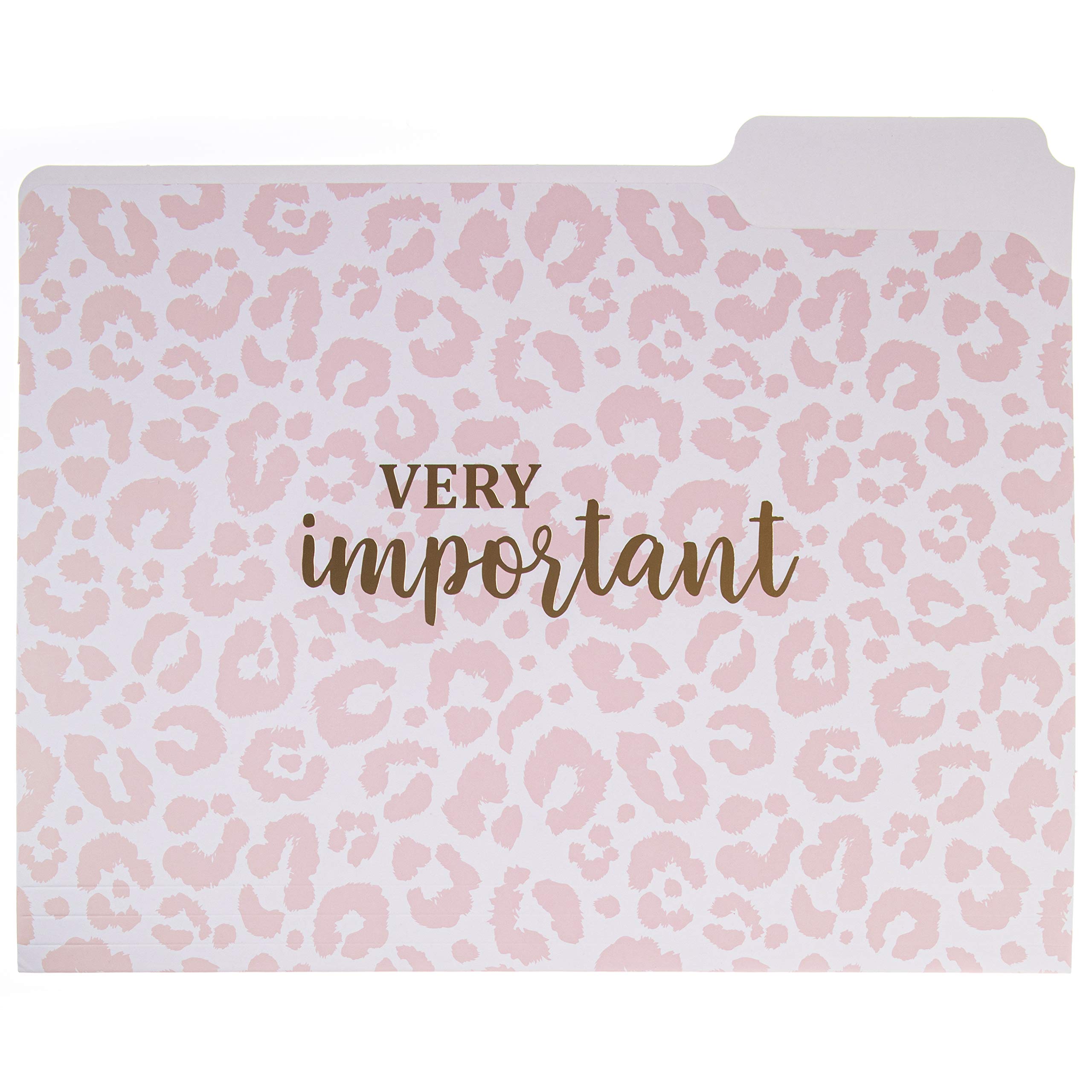 STAY PRIORITIZED These organizing file folders keep you focused on tackling key projects first followed by the others on your to-do list. Decorative gold foil script on these colorful folders include: “very important” on white with pink leopard print, “not important” on pink with gold stripes, and a wordless white with gold leopard print for those somewhere in-between projects.