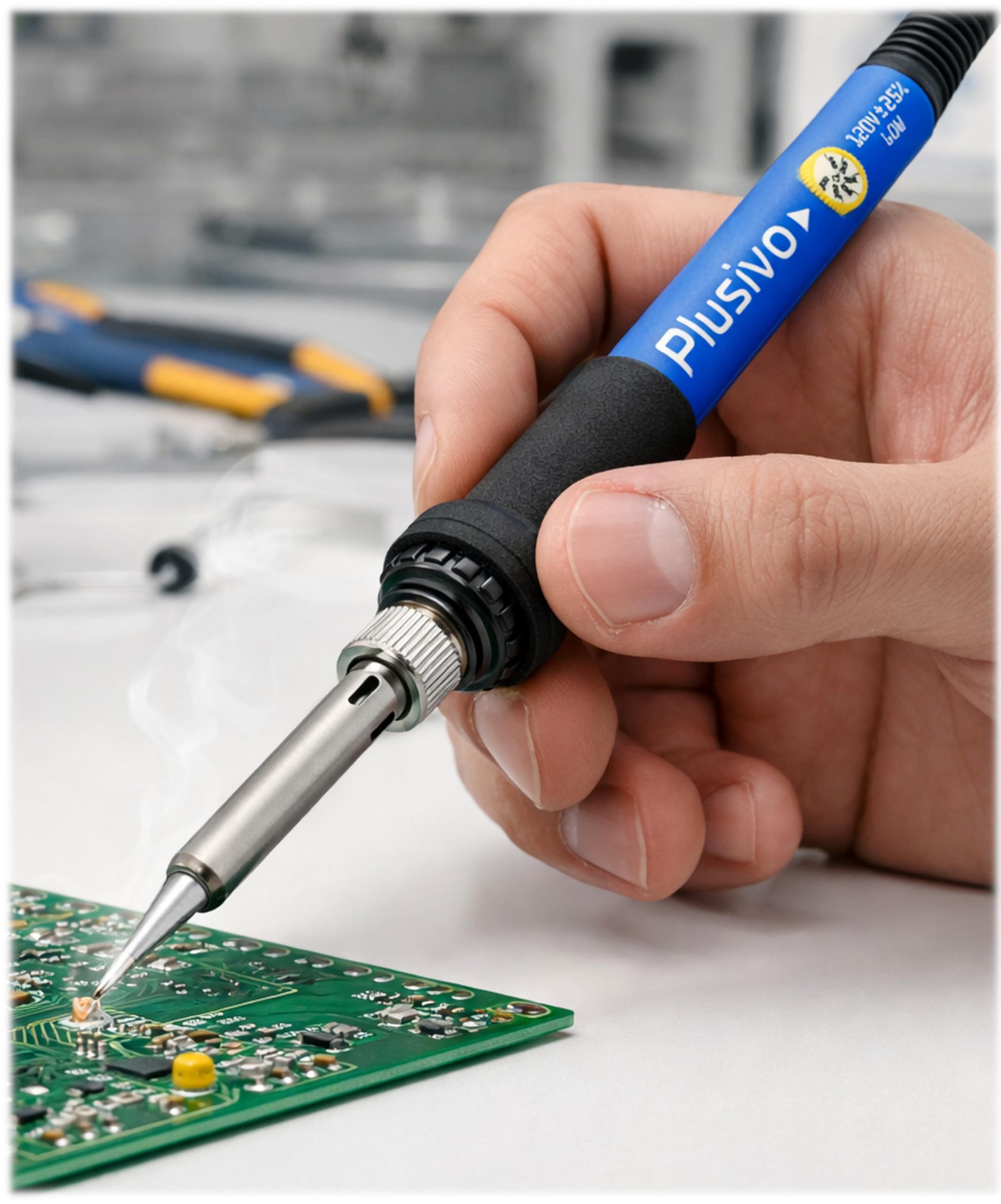 Fast Heating 60 W Soldering Iron-Easy to operate and portable with a heating element that reaches working temperature quickly. Ideal for circuit boards, electronics repair, wiring, compatible with Arduino projects, school soldering projects, circuit board works computers, training, home improvement, schoo