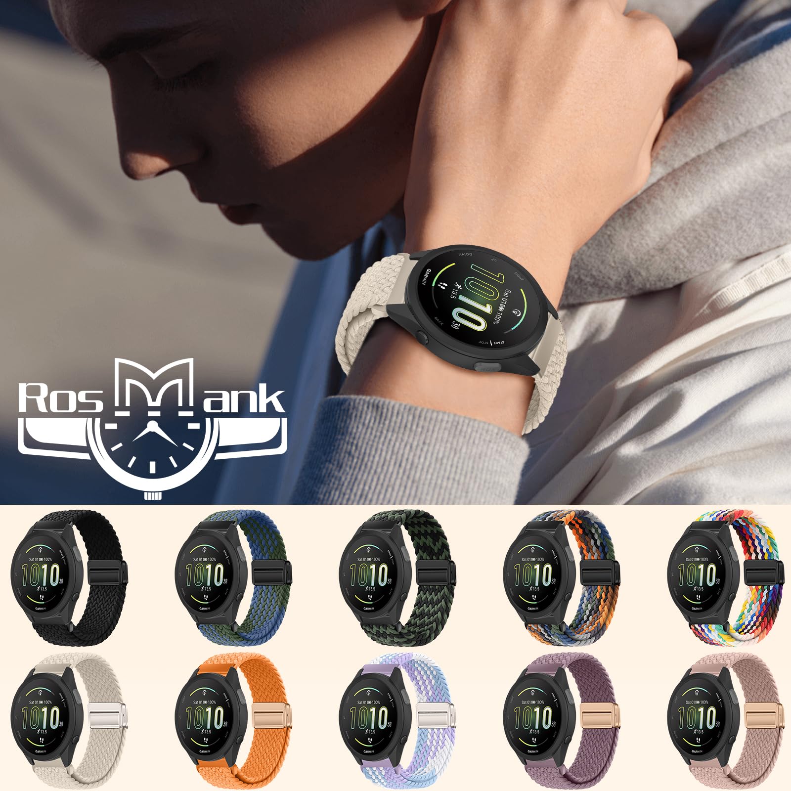 【Excellent material】 RosMank band is made of premium nylon, which is soft, flexible, lightweight and comfortable while not irritating the skin like plastic, allowing sweat to escape and cleaning quickly and easily. That's a great feeling for any sport. Great choice for daily exercise.