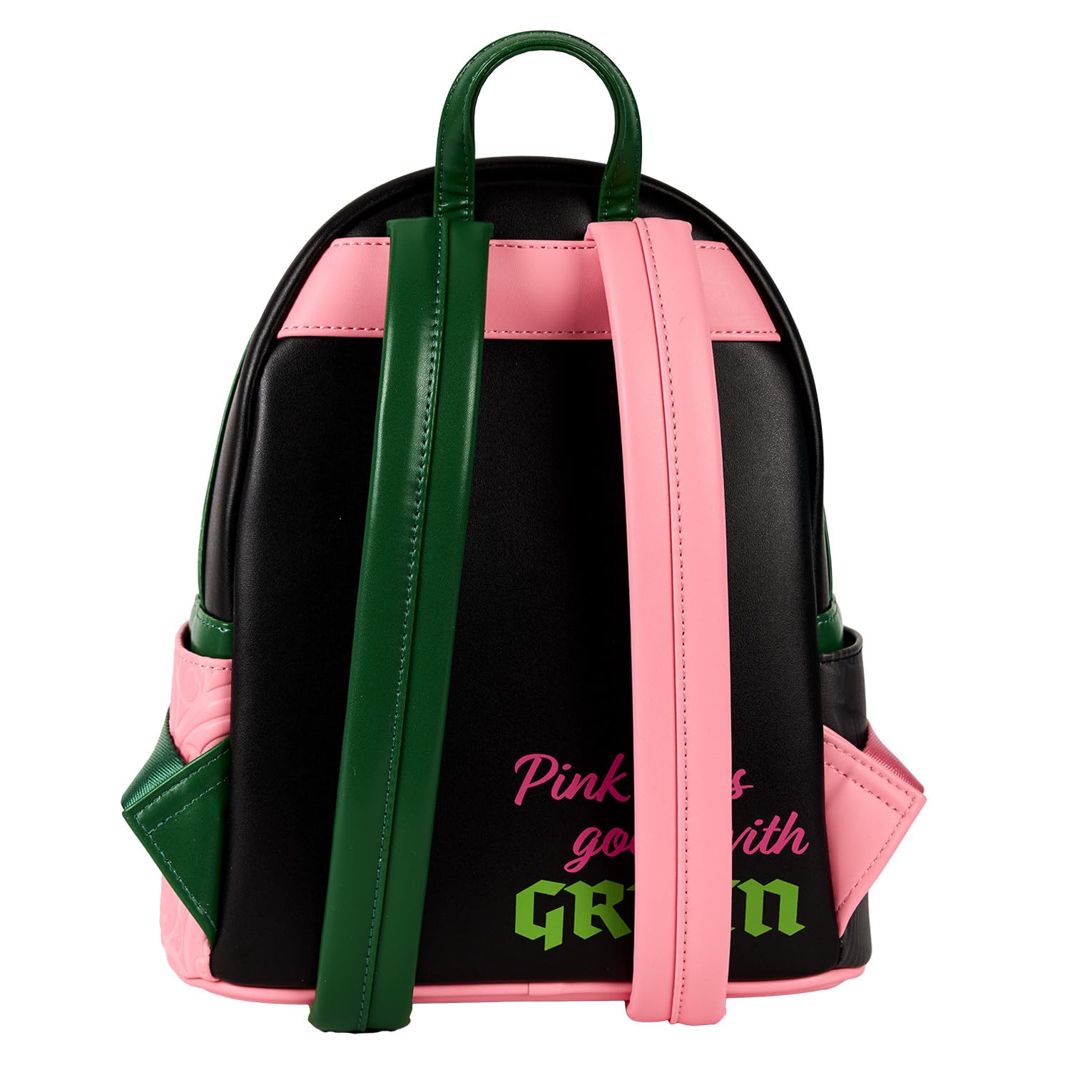 Featuring incredible detail to bring Glinda and Elphaba to life, this Loungefly mini-backpack is made of vegan leather (polyurethane), has a front zipper compartment, side pockets, and adjustable back straps.