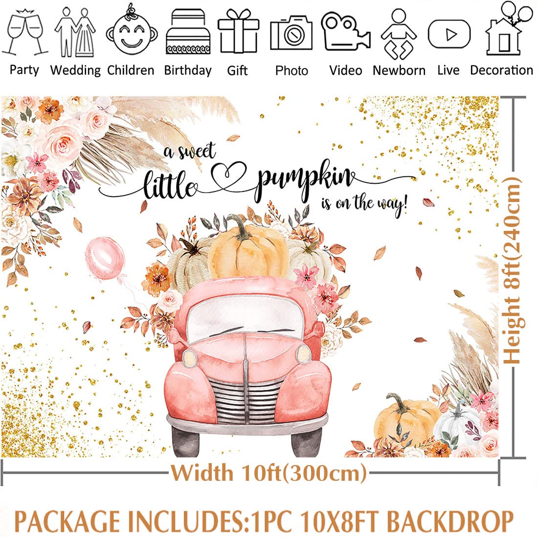 Widely Use: This pumpkin backdrop is perfect for pumpkin baby shower decorations; Also applied in occasions like family gathering, wedding, home decor; Professional photography like baby mini session, artistic portraits and DIY photo booths