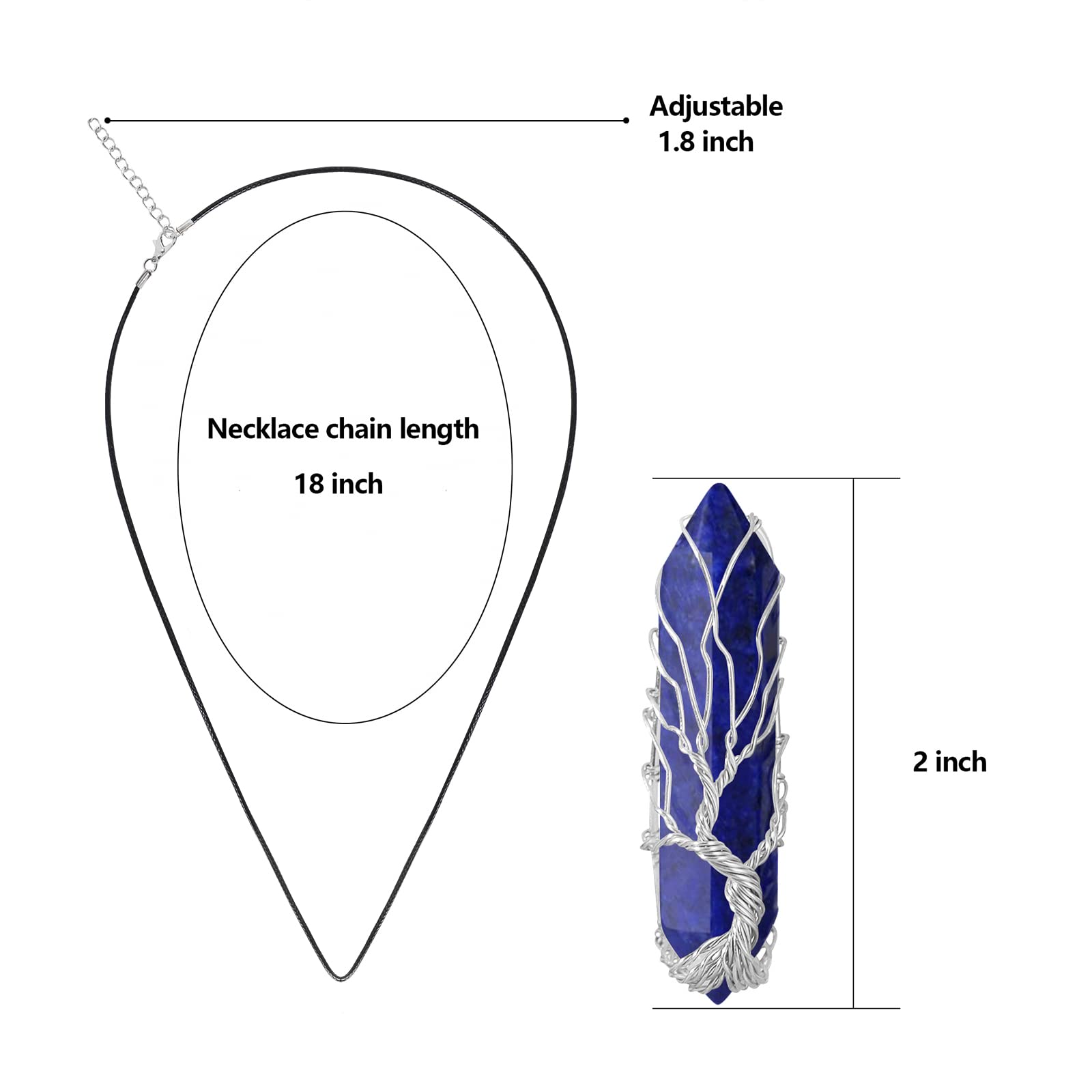Description Healing Crystal Necklace Tree of Life Wire Wrapped Teardrop Natural Stone Pendant Necklace Reiki Spiritual Quartz Gemstone Jewelry for Women Men Specification: Necklace Chain Size: 19.7 inch (adjustable). Crystal Point Pendant Size: 1.89*0.98 inch. Weight: about 0.25oz. Material: natural crystal stone & Gold Wire Alloy. Protect your crystal necklace: 1. Please take it off when take a bath, wash your hair, swim in the pool or sea, soak in the hot springs, do housework, the chemicals in shampoo, the salt water in sea, the chlorine water in the pool, the detergent used in household chores will have a bad effect on the crystal stone necklace. 2. The crystal necklaces that is not worn normally should be stored in a special storage box or jewelry sealed bag for storage and storage, and should not be placed in a wet or exposed place for a long time. If you have any questions about the crystal necklace you bought. You can ask us questions, "VIBILIA" will provide you with professional answers within 24 hours.
