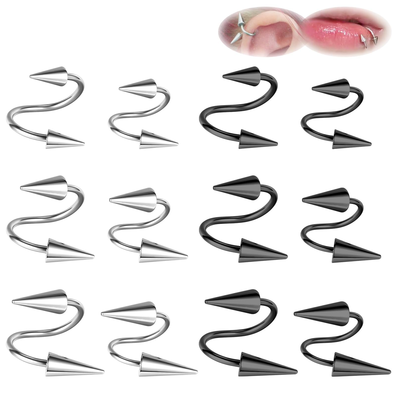 ❀Spike Lip Piercing Jewelry——You will receive 12 Pieces 16g twist lip rings(6Pcs Black and 6Pcs Sliver). The twist spiral nose ring can be as gift for Families or Friends on Birthday, Graduation, Mothers' Day, Thanksgiving, Christmas, Valentine's Day, etc.