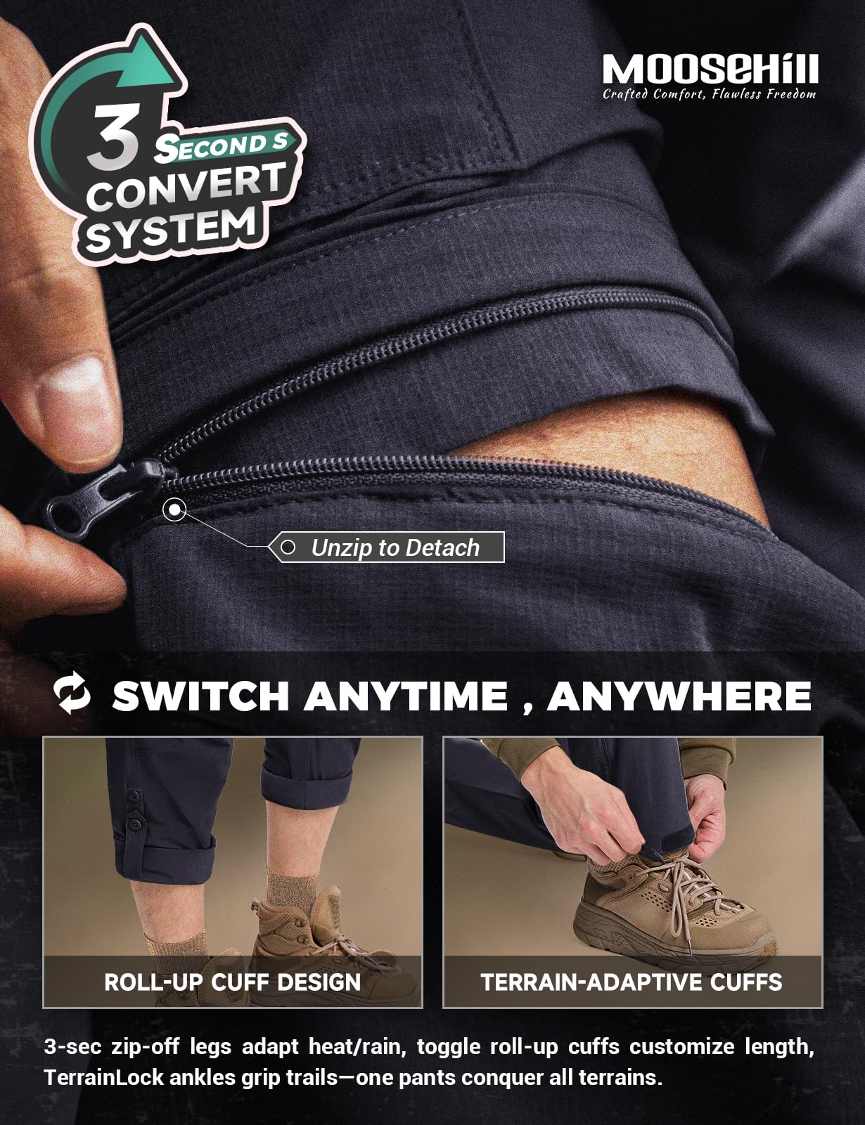 Instant Convertible Convenience: Switch from pants to shorts in seconds! L/R zipper labels eliminate guesswork, while snag-free zippers ensure smooth transitions—ideal for sudden weather changes or trailside breaks.