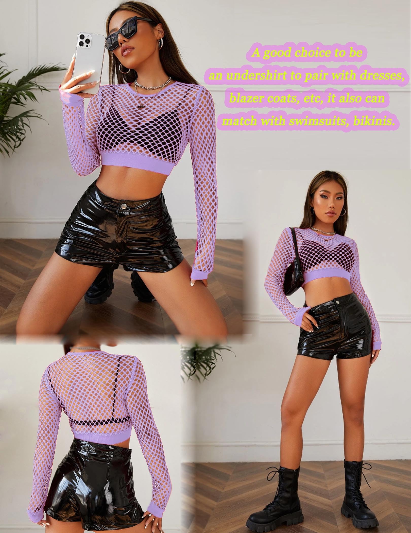 【Material】Fishnet top is made of 100% polyester. It is soft, lightweight, breathable, and stretchy, comfortable enough to wear both as outfits for indoors and outdoors