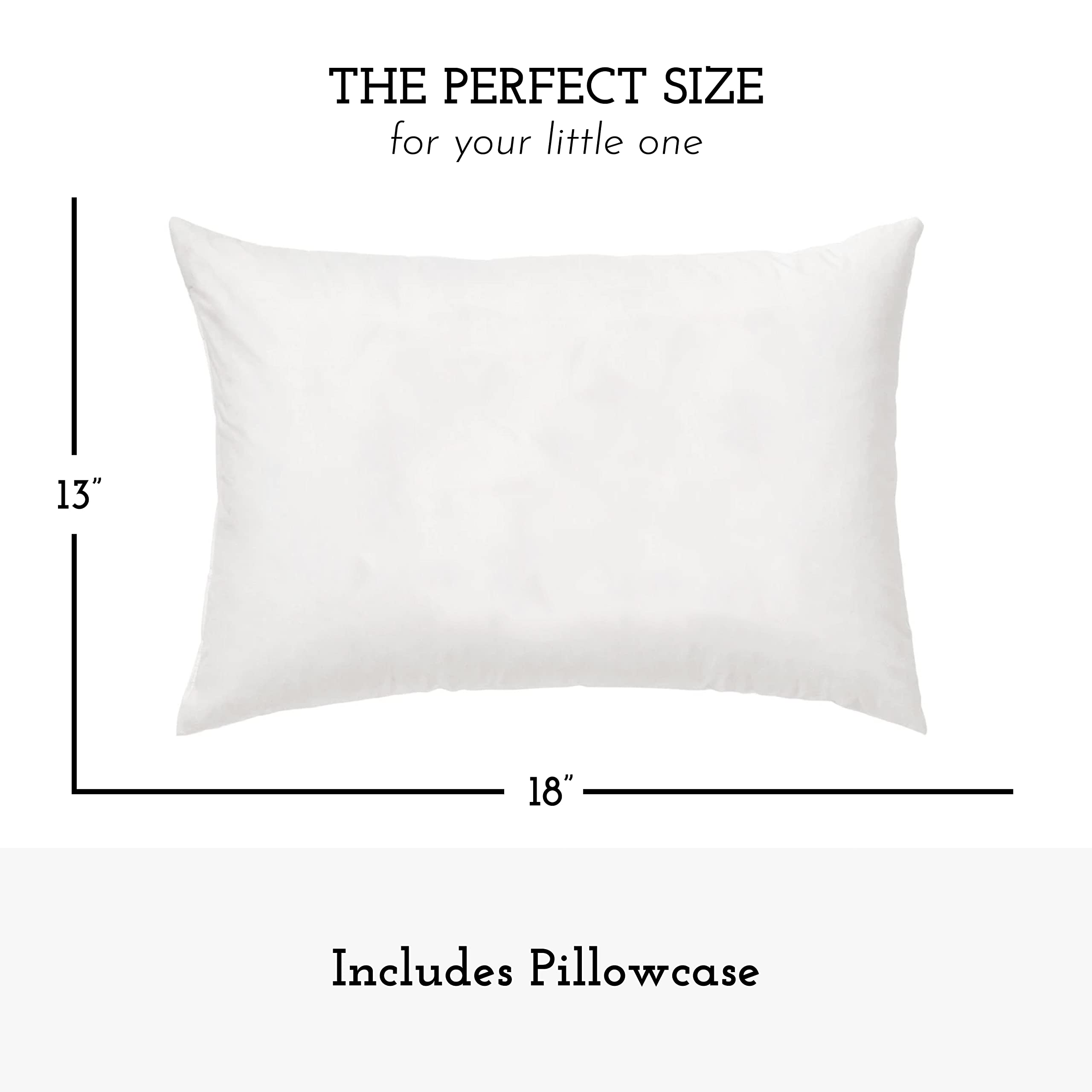 Dreamy Toddler Pillowcase: Crafted from 100% cotton, the included toddler pillowcase fits snugly and comfortably around the pillow. Featuring an envelope pillowcase enclosure, it's a breeze to slip on and off for washing. Appreciate the softness and quality of the pillow, which is hypoallergenic and holds its shape well after multiple washes. Plus, it gets softer with every wash, ensuring your little one's comfort night after night.