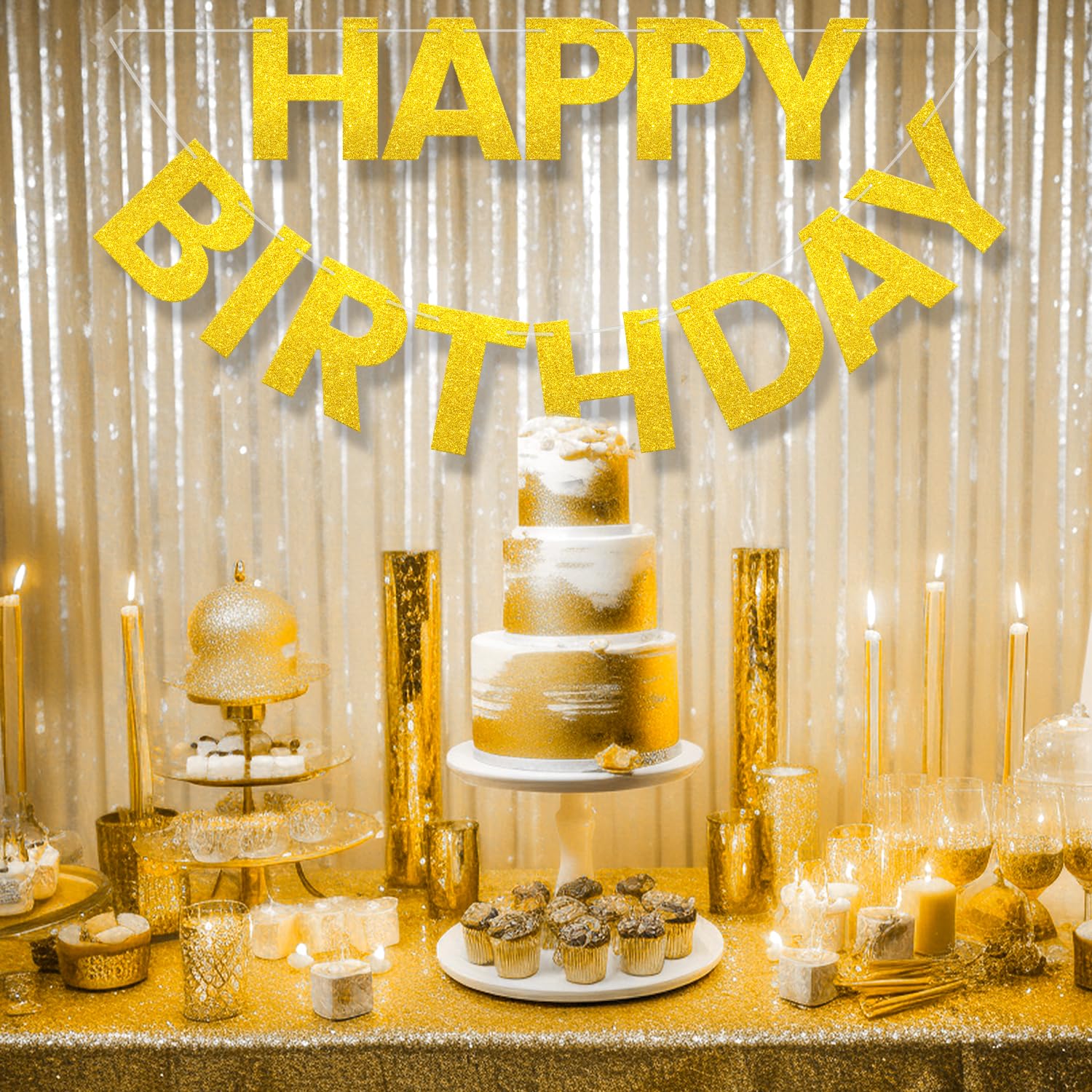 Trendy and Fun: Our happy birthday banner is the perfect for gold glitter bday, ensuring a guaranteed hit for your birthday decorations