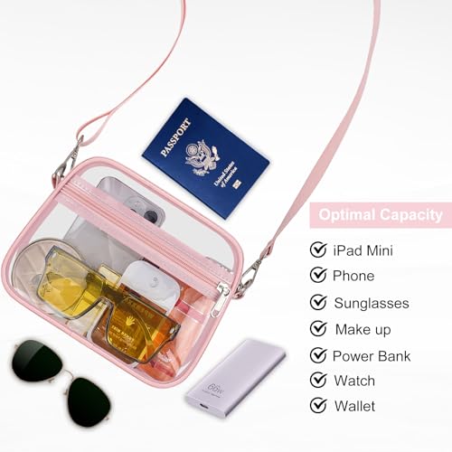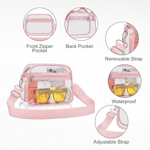 Suitable Capacity: This messenger bag has a main compartment can hold a small wallet, phone, lipstick, tissues, and sunglasses, while the front pocket can hold keys, cash, cards, and tickets, making our clear bag an essential for your concert outfit.