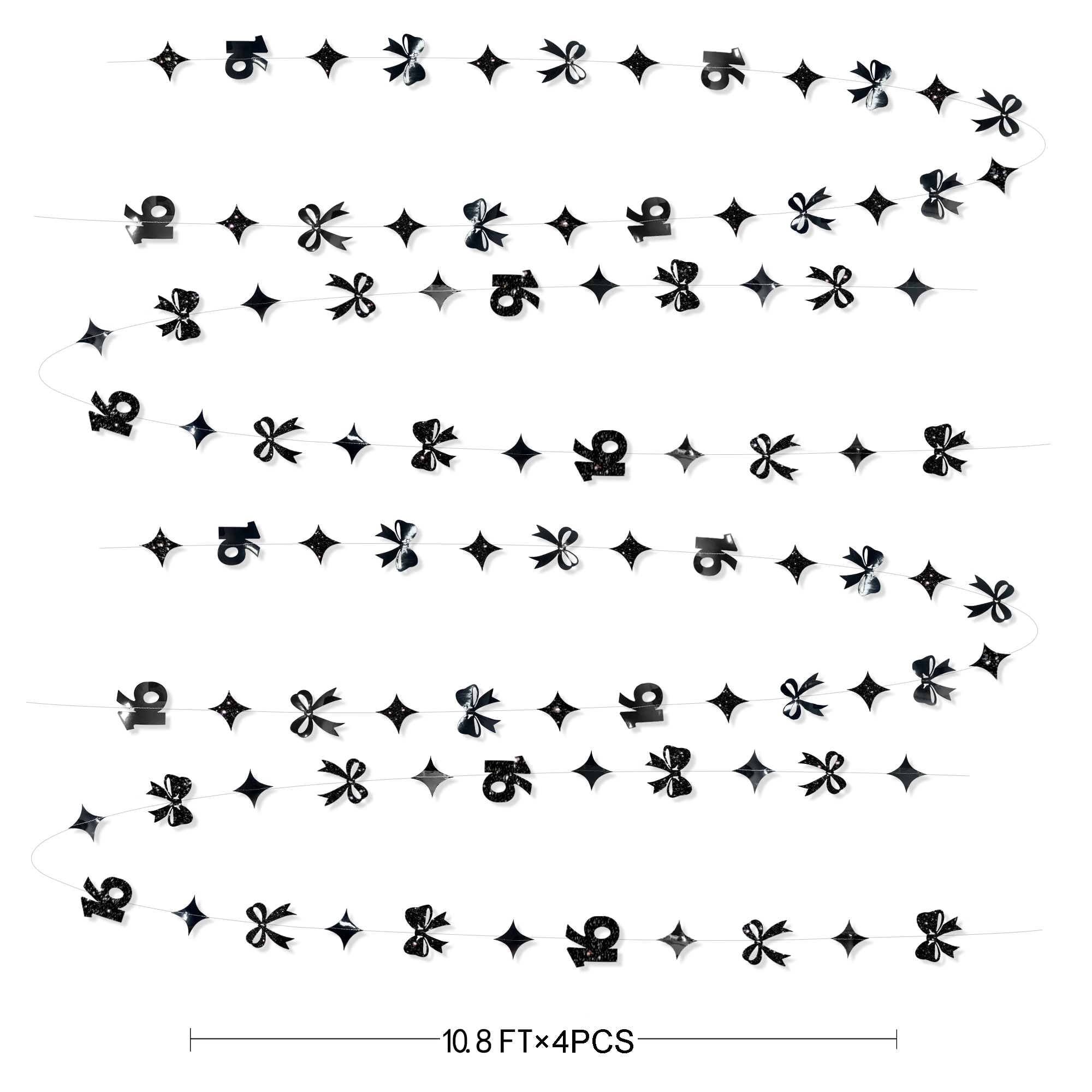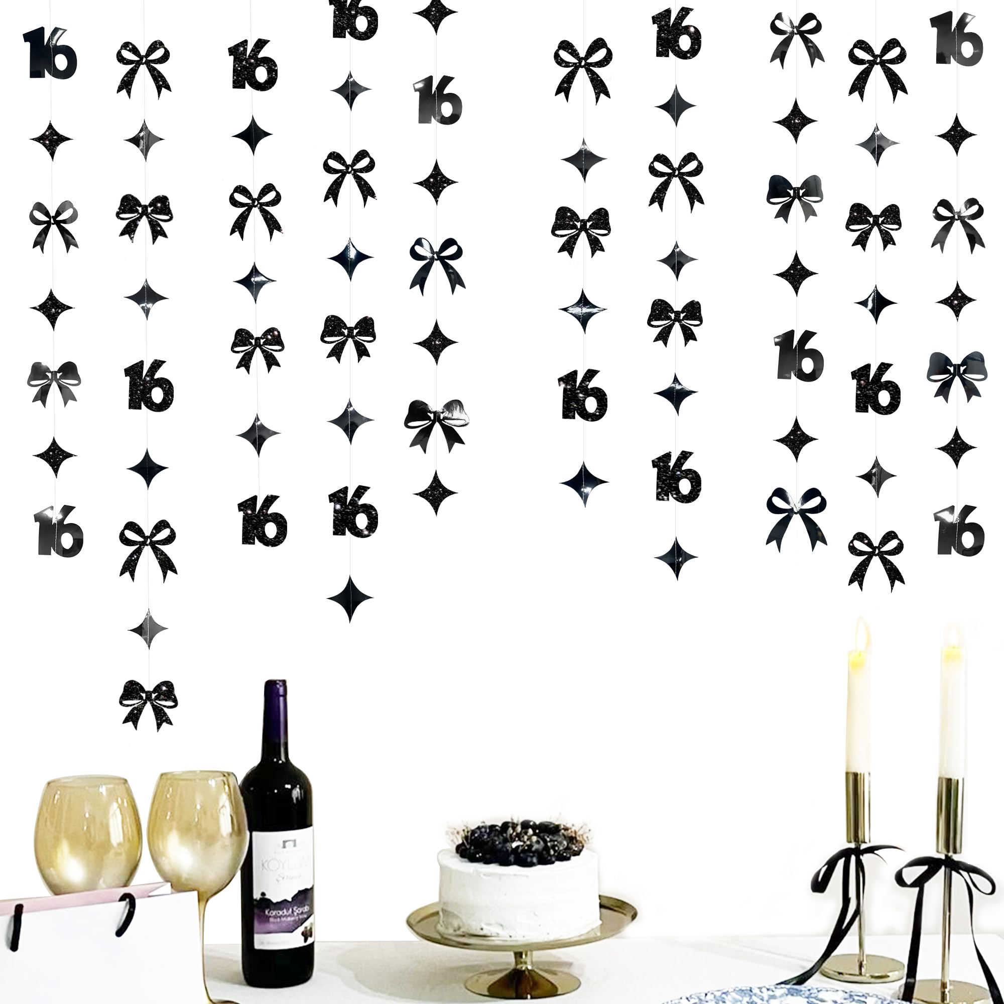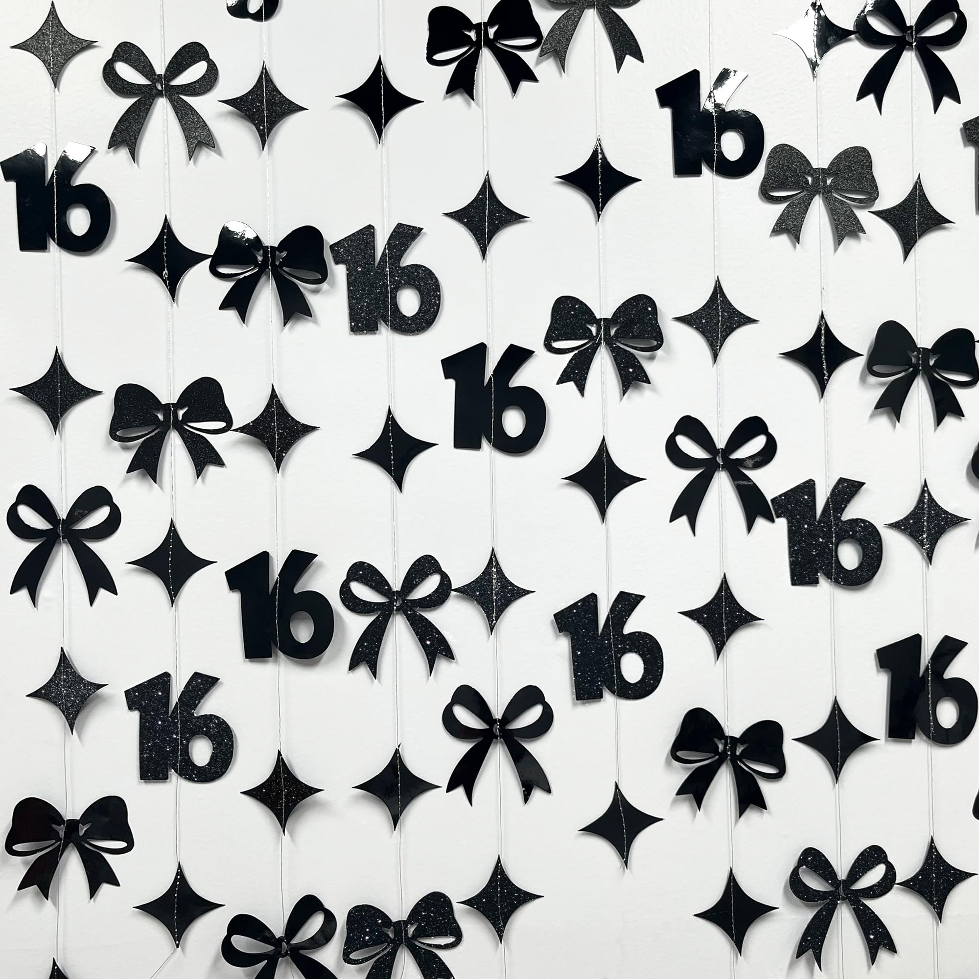 👍 Package includes - 4 strings of 10.8 feet/3.3 meters black number 16 and conquette bow with sparkling twinkle star and circle dots garlands , totally is 43.2 feet/13.2 meters