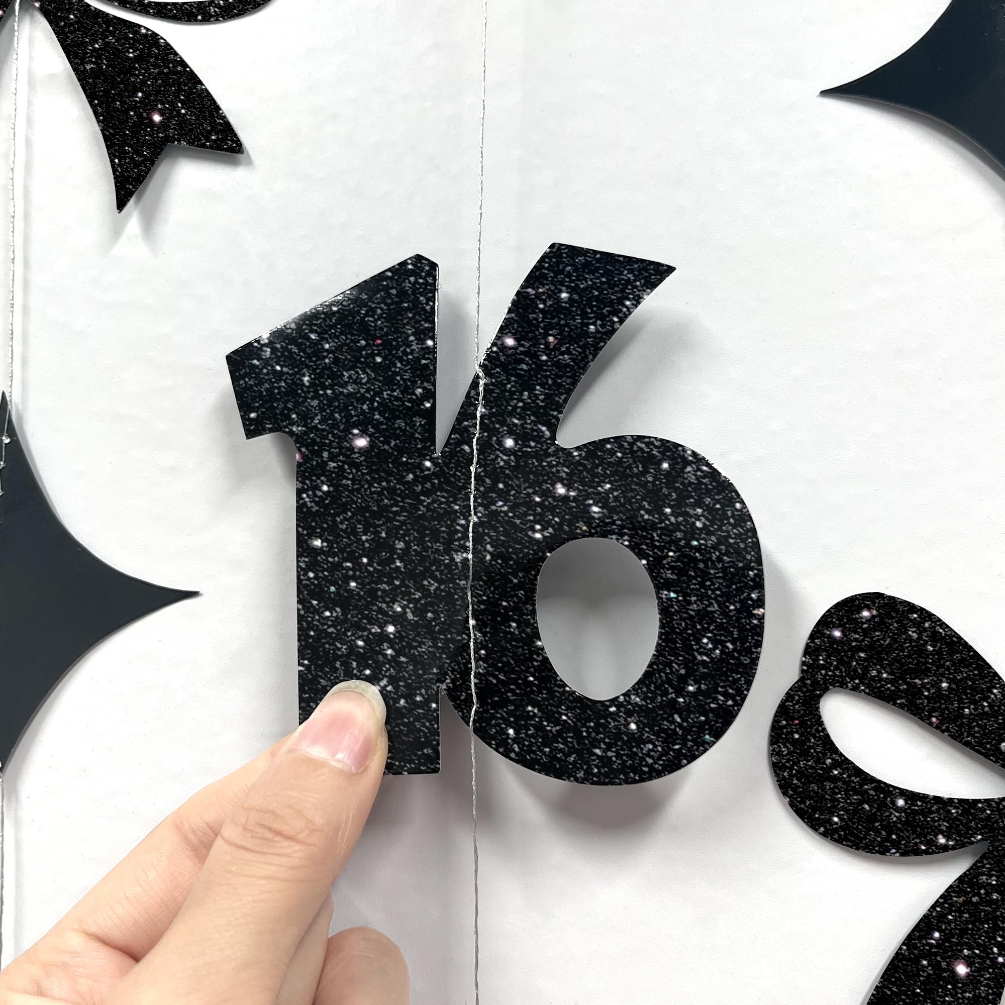 👍Environmental Material - Our black 16th bow themed birthday party decorations garland are made with high quality double sided metallic and glitter paper cardstock, carefully hand-made and connected with thread, durable and reusable in nice and bright colors