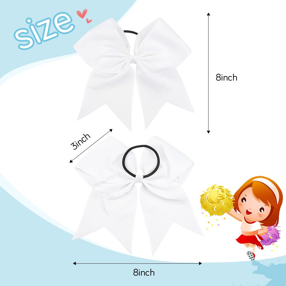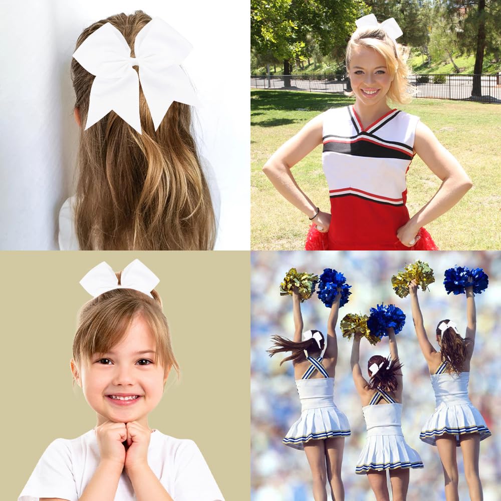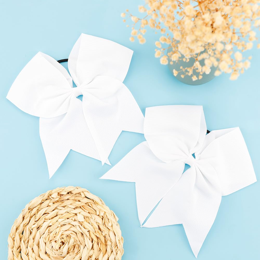 Cheer Bows,White Cheer Bows for Cheerleaders,White Hair Bow Large 20 Pcs 8 Inch Bows for Girls,Softball Cheerleader Bows,Ponytail Holder Bow Scrunchies School Sports Cheerleading Bows Hair Accessories