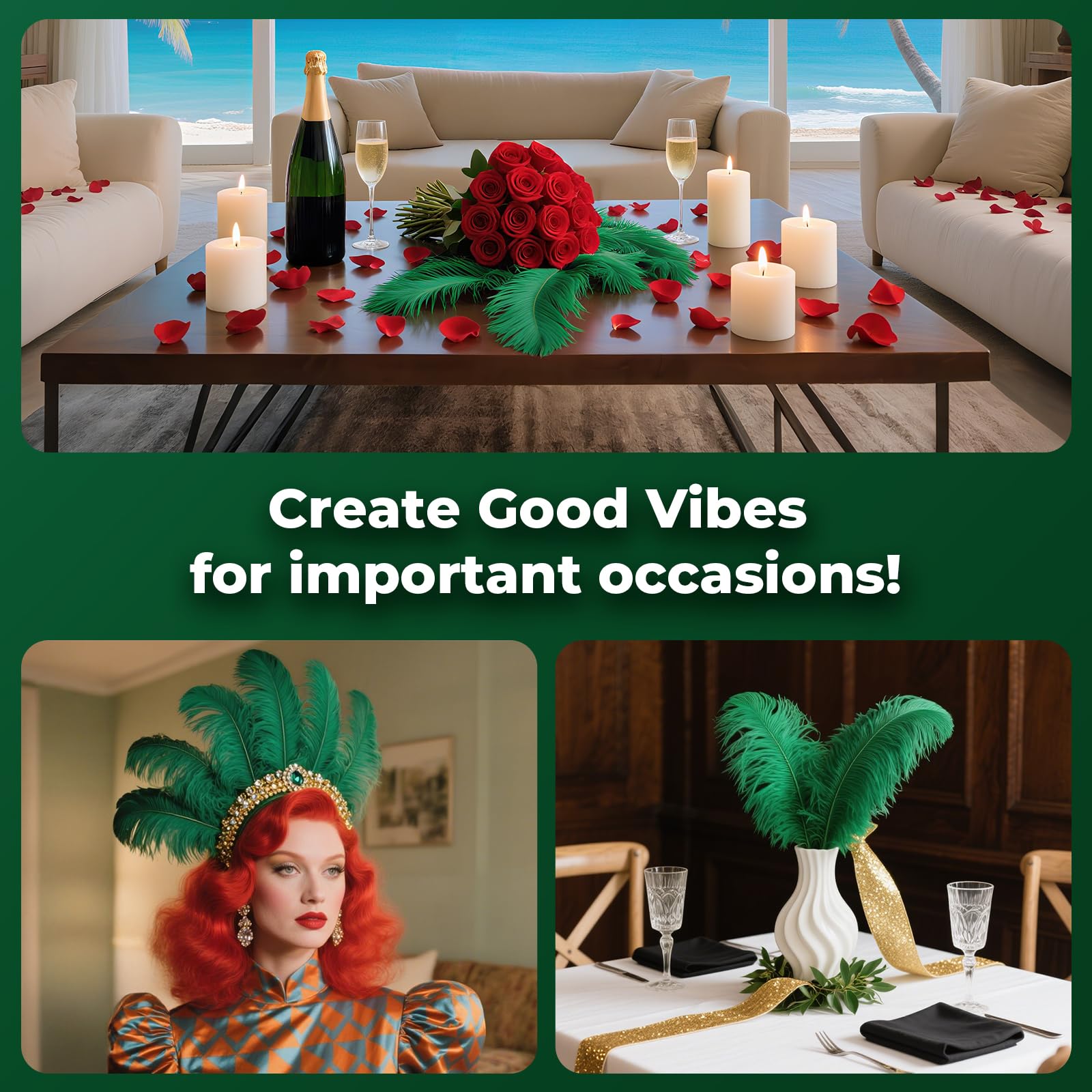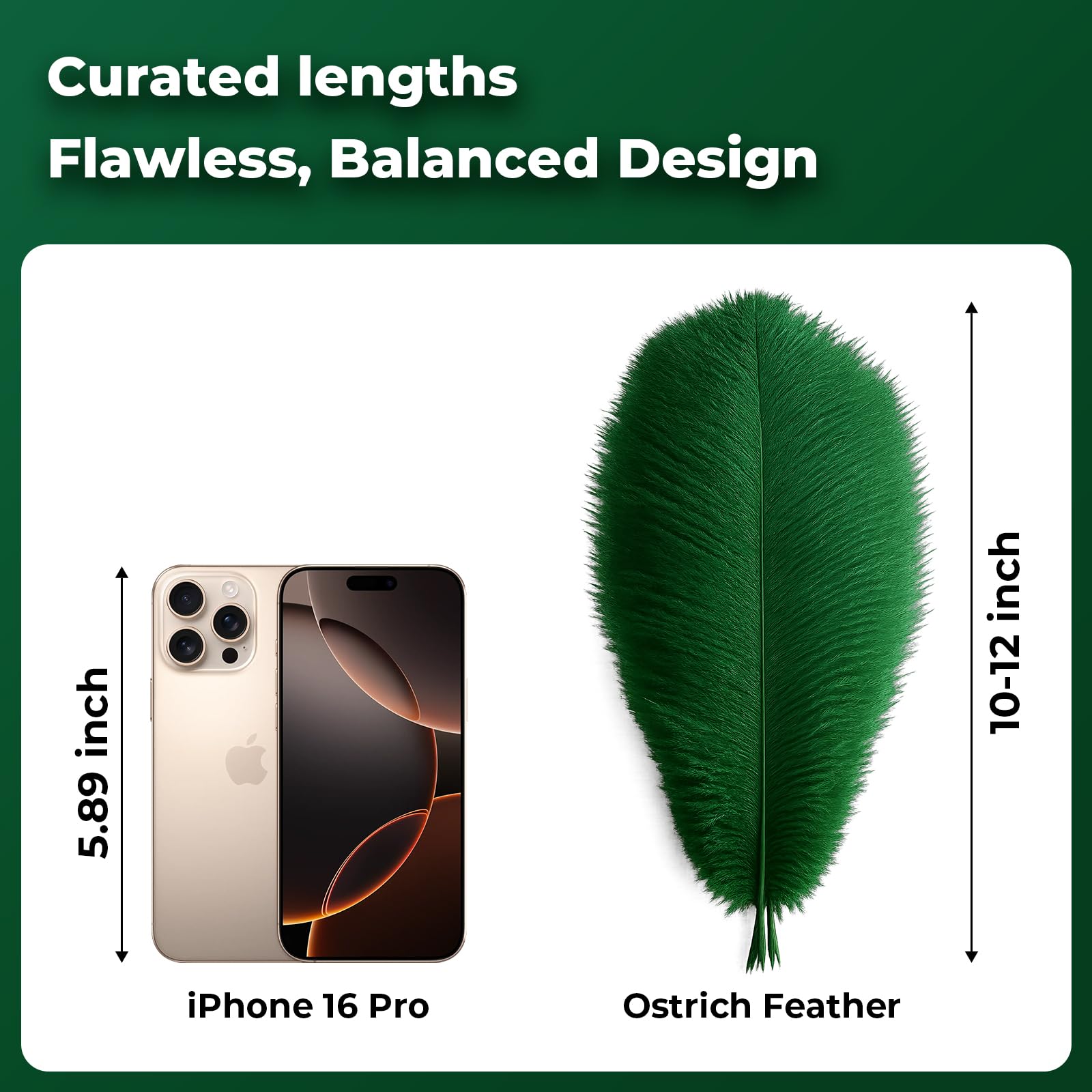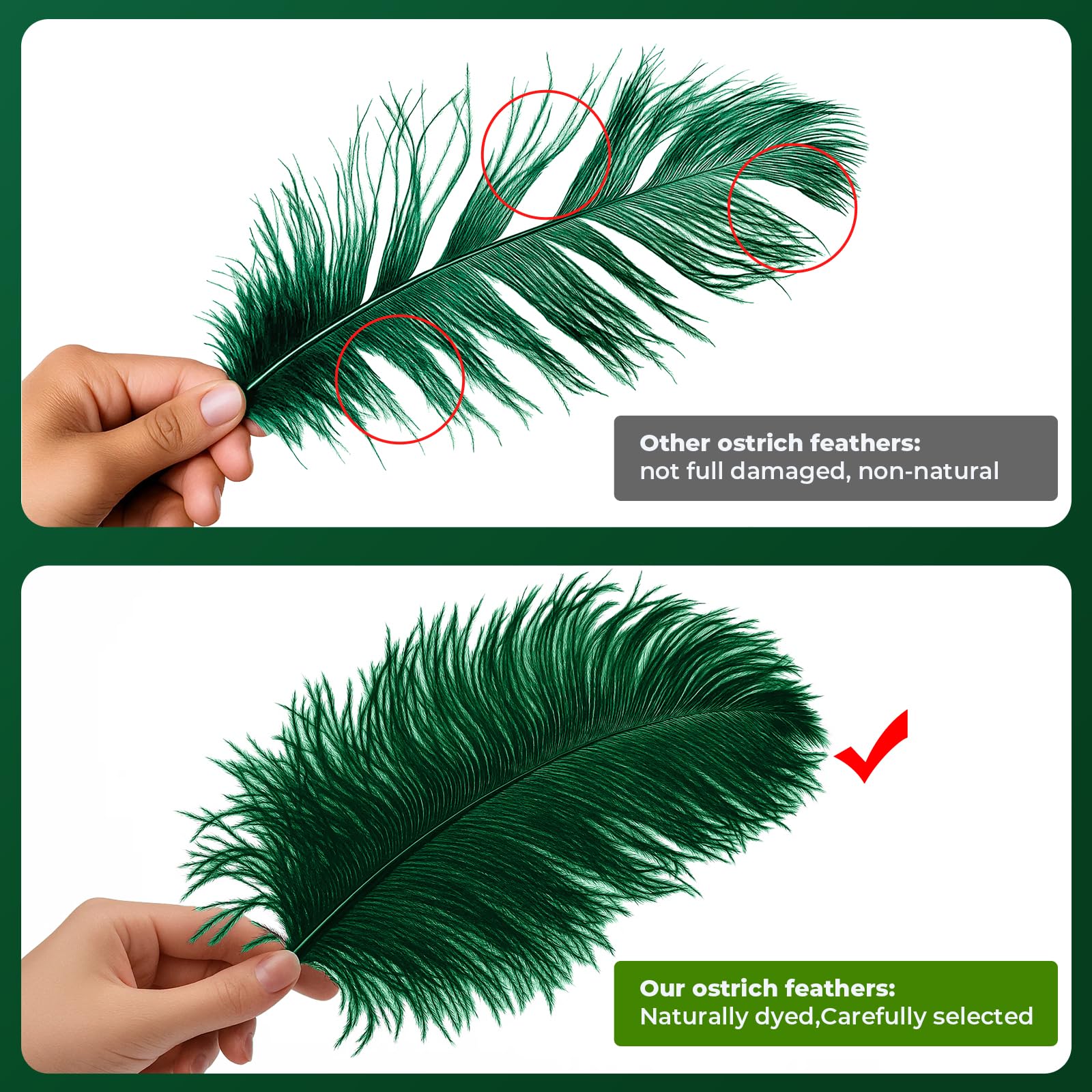 Piokio 20pcs Natural Blackish Green Ostrich Feathers 10-12 inch (25-30cm) Bulk Feathers for Home Decoration and DIY Clothing and DIY Clothes Decoration, Gatsby Decorations