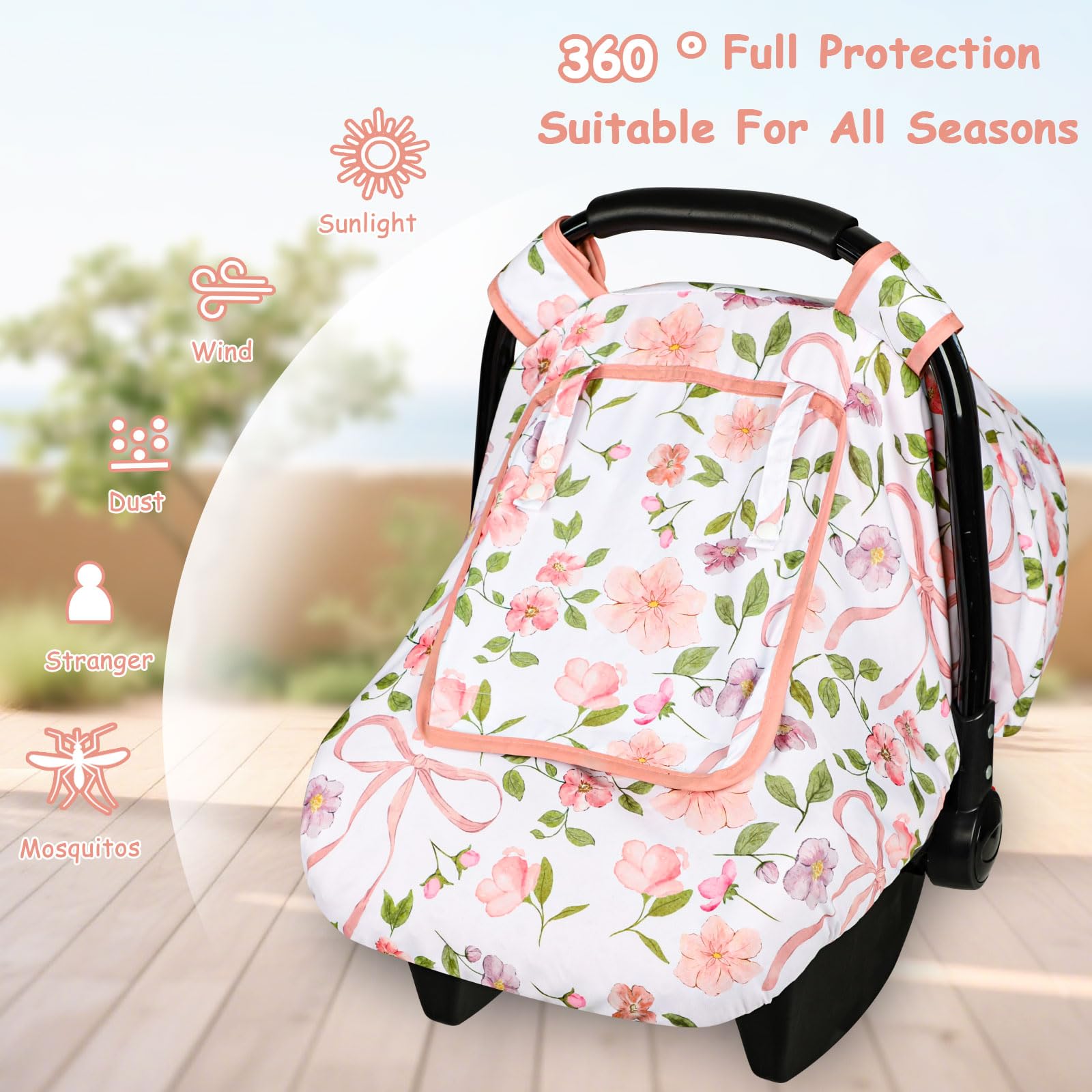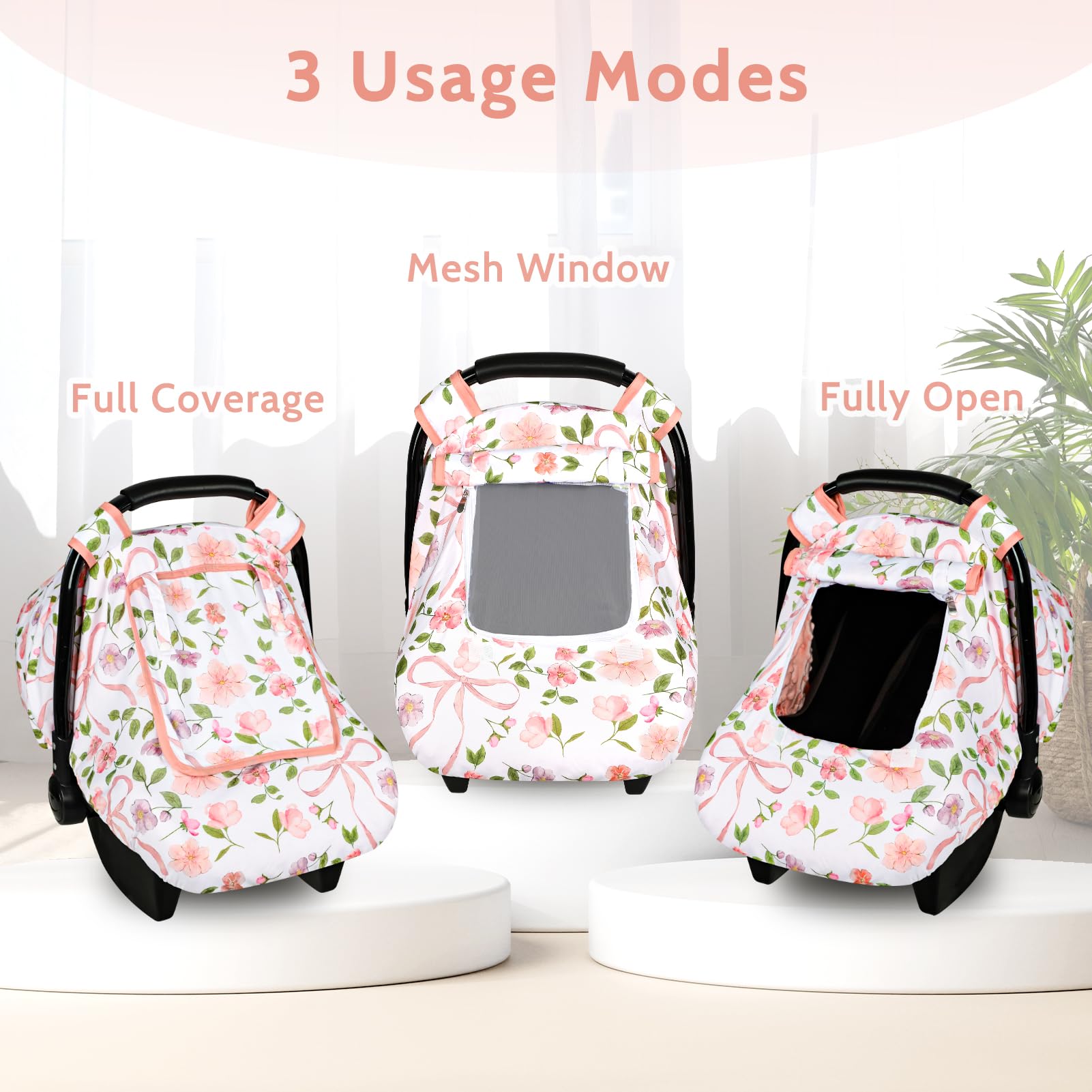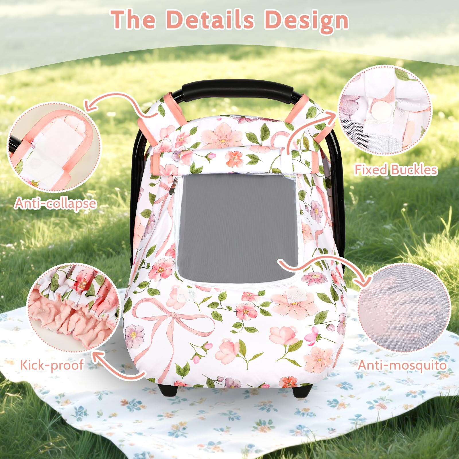 Easy to Install & Use: This baby car seat cover features soft Velcro straps while easily attaching to any infant car seat or stroller handle. The hook-and-loop fasteners are compatible with all standard carriers. The roll-up window can be secured with convenient buttons, and the entire cover folds compactly into a portable storage bag for on-the-go convenience