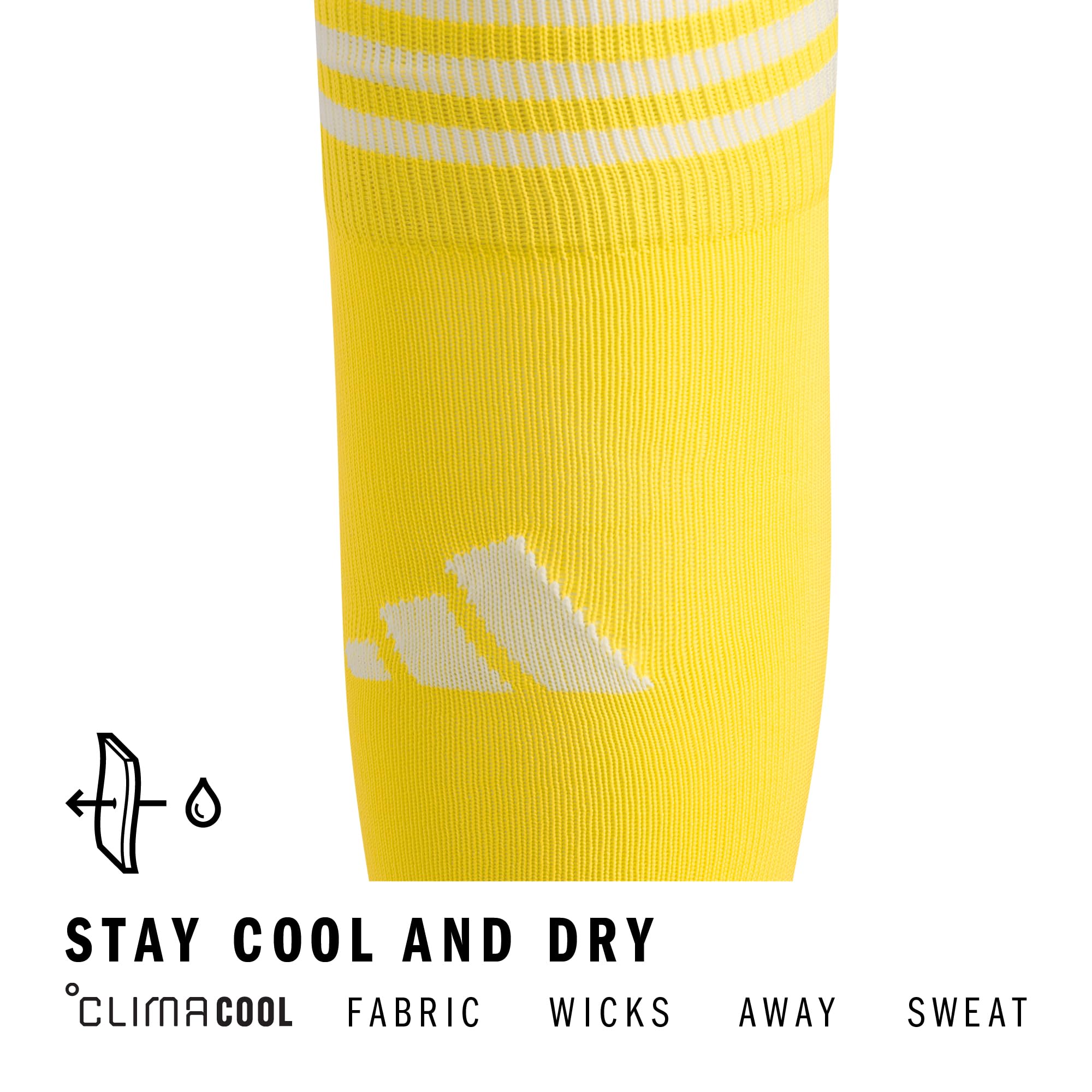 Description Get ready for the game with these adidas soccer socks, designed to elevate your performance on the field. These womens and mens socks offer moisture-wicking yarn to keep your feet dry from sweat. The classic 3-Stripe finish at the welt and center front Badge of Sport logo add a touch of style that's synonymous with adidas soccer. Whether you’re in the midst of a competitive match or a casual game, cushioning at the heel and toe provides the shock absorption you need. The adidas Copa Zone Cushion 5.0 socks feature compression for a secure fit and additional support. These womens and mens compression socks include arch and ankle support, providing stability. The airy mesh and lightweight construction offer a close fit and excellent ball touch, making them ideal running socks for men or women who seek both comfort and performance. These over-the-calf socks offer the classic fit and protection you'd expect. Perfect for both casual use and high-intensity activities, these socks are a versatile addition to any athlete’s wardrobe. Experience the superior quality and functionality of adidas soccer socks.