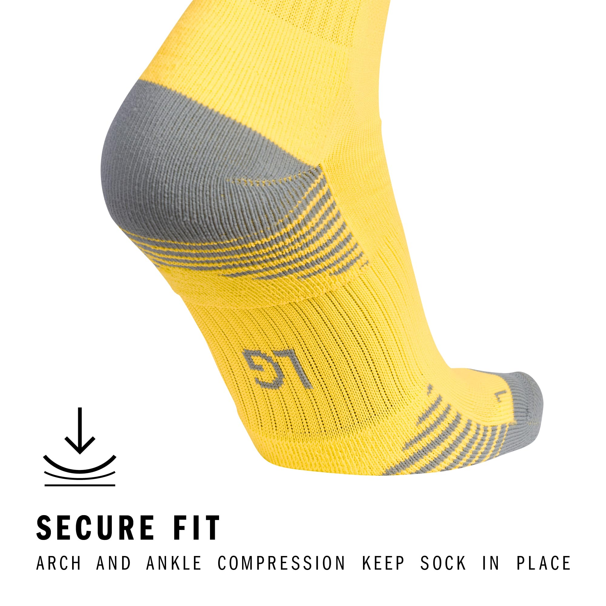 MOISTURE CONTROL: Our moisture-wicking socks for men and women keep feet dry from sweat, providing comfort in men's sports compression socks for arch and ankle. Color: Team Yellow/White