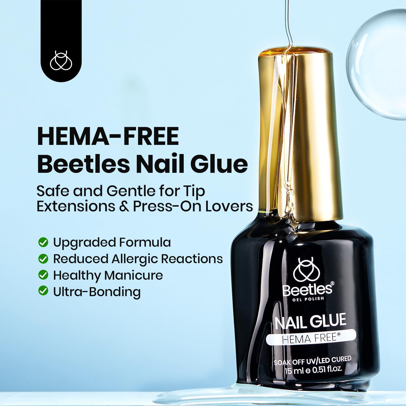 9 in 1 HEMA-Free & Skin-Friendly Nail Glue: Beetles 9 in 1 nail glue features an upgraded HEMA-Free & TPO-Free formula, specially designed for sensitive skin. One bottle works as nail glue, base gel, blooming gel, slip solution, rhinestone gel, sealing gel, apex builder, brush cleaner, and color mixer—safe, versatile, and all-in-one.