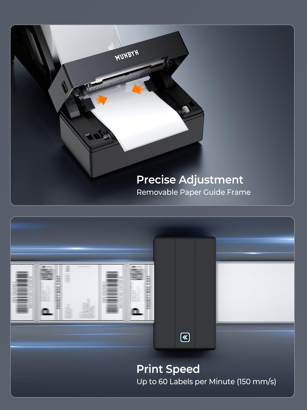 Save Wisely with Munbyn Realwriter Series: Print ultra-clear at 72 pages/min, reducing errors and waste. Eliminate outsourcing, ink, and toner costs for smart savings with the Munbyn thermal printer 130B and our branded labels that resist smudges and fading