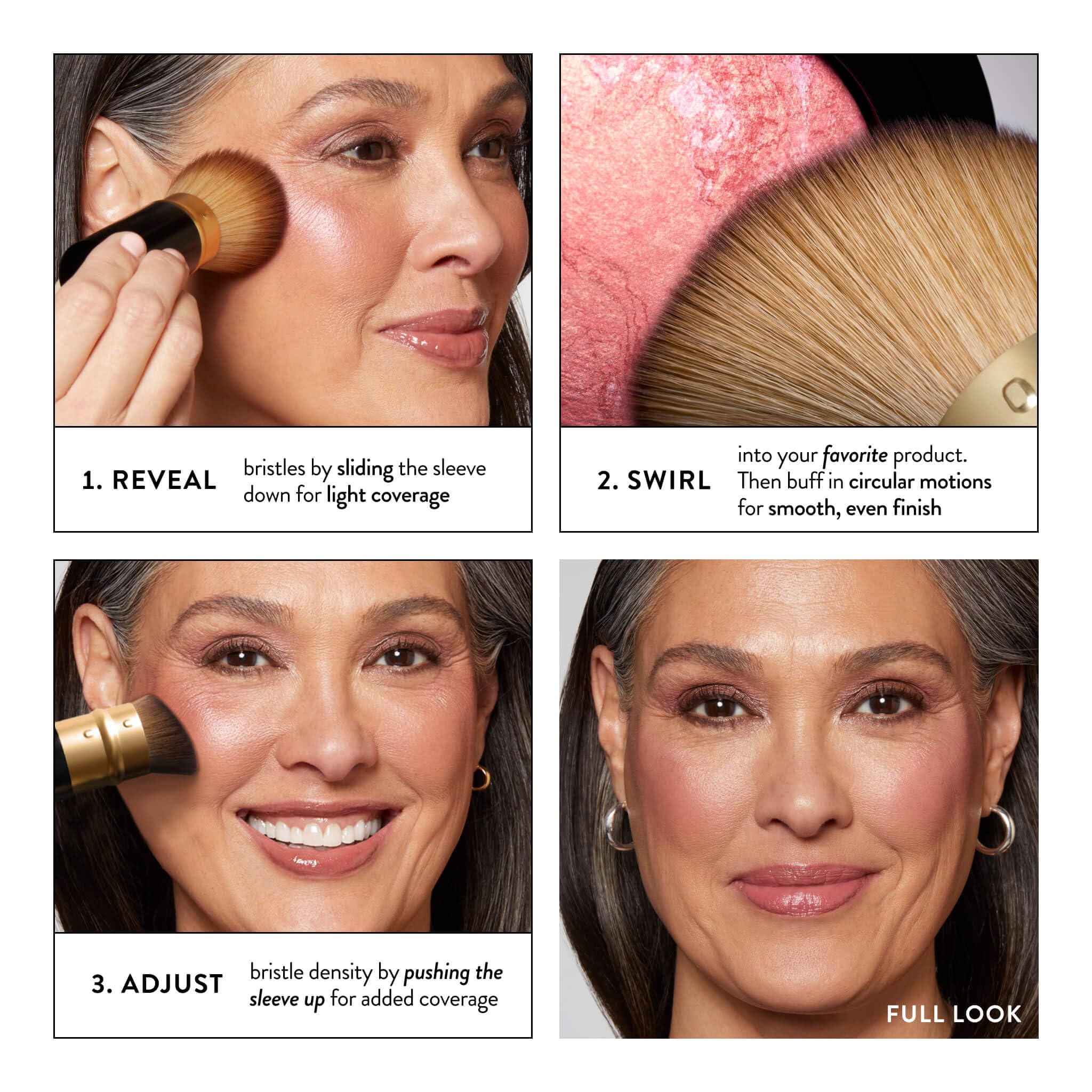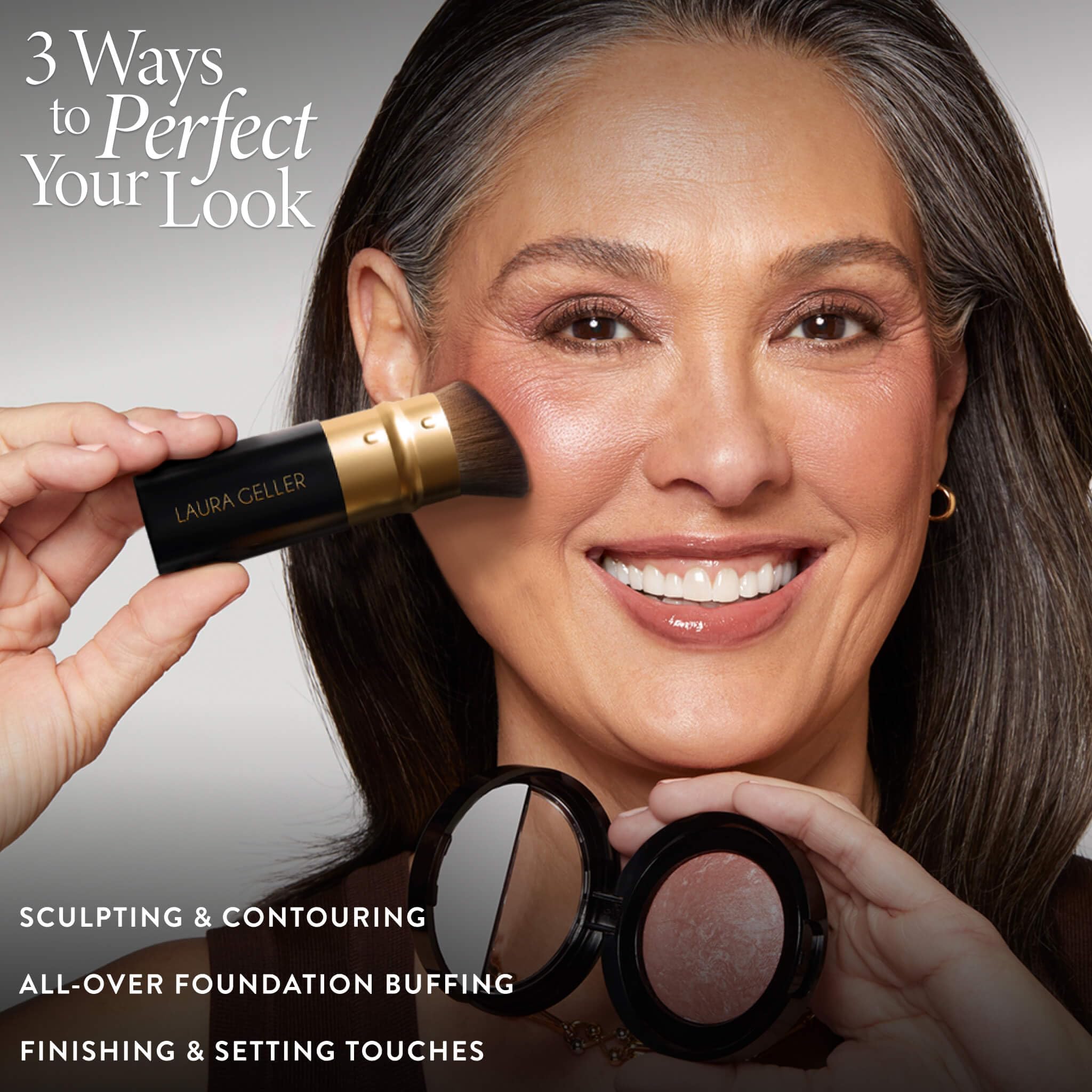 PERFECT FOR LIQUID, CREAM, AND POWDER PRODUCTS:If you only have one brush in your makeup bag, this is the one to have—it works with loose and pressed powders, is a quadruple-threat (use it wiith foundation, color, highlight, or contour), and even packs away easy for travel.