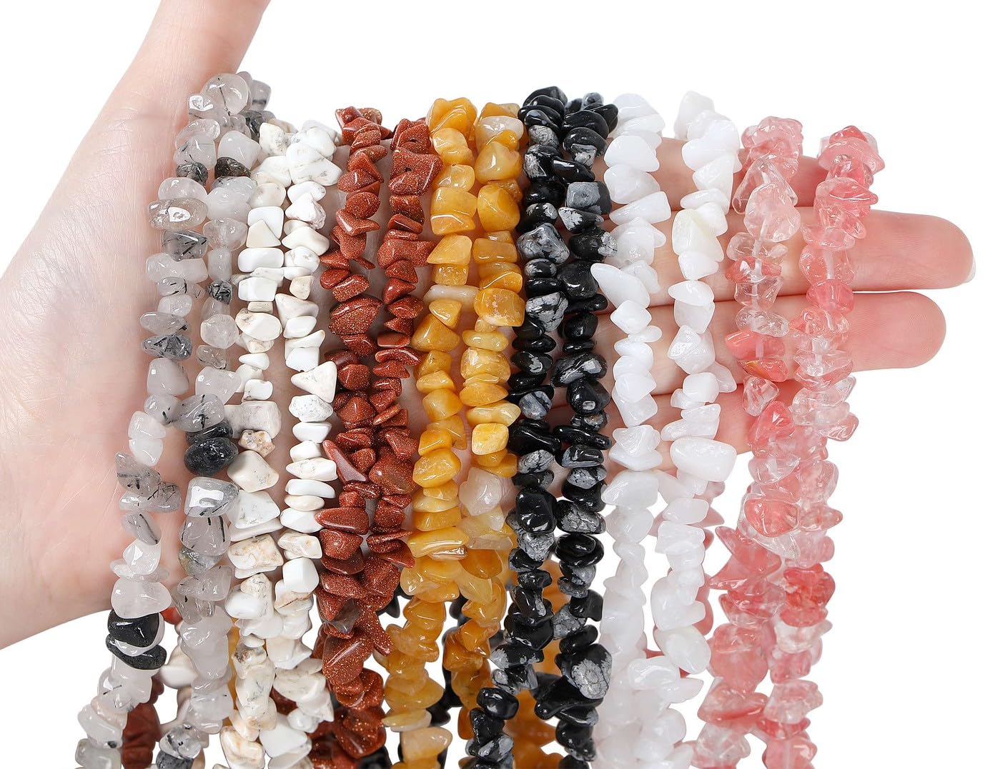 【Size】 about 0.1-0.3inch (5-8mm) polished natural loose beads, 400 pieces of beads,hole size 1mm.A variety of materials and colors for your choice.