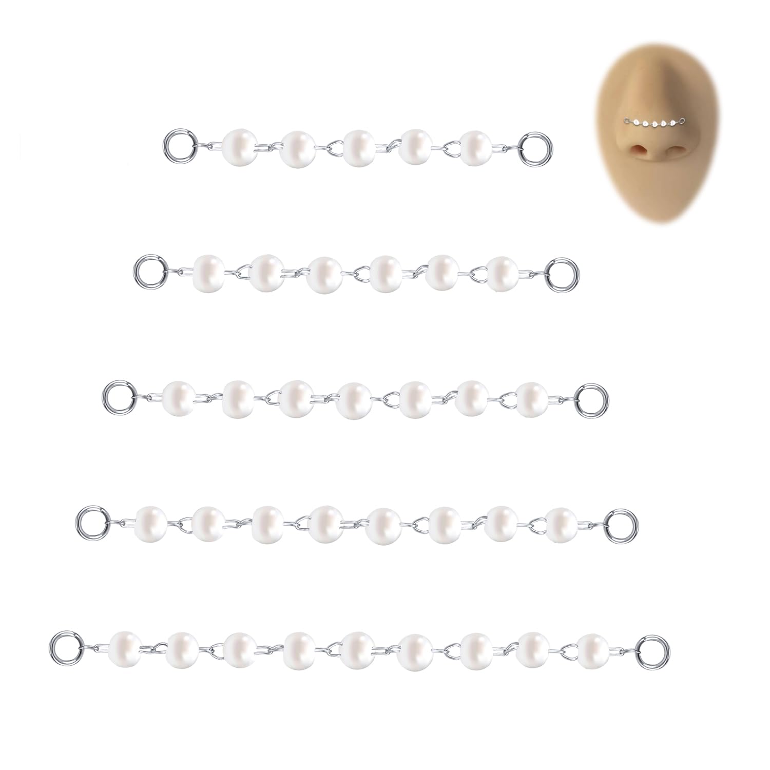 ★Packaging & Size: Five different sizes of nose ring chains, 32mm, 35mm, 40mm, 45mm, 50mm, meet your wearing needs for different parts. (This set does not include nose studs, nose rings, or earrings)