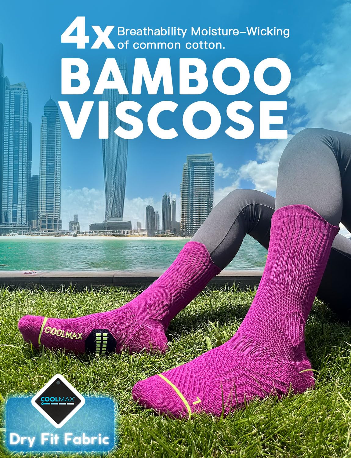 【Stay Cool, Stay Confident】 Bamboo Viscose + Coolmax blend excels at moisture-wicking, keeping feet dry through HIIT workouts or humid trail adventures. Bamboo viscose naturally resists odors and wicks moisture for daylong freshness—ideal for high-intensity cycling classes or post-jogging errands.