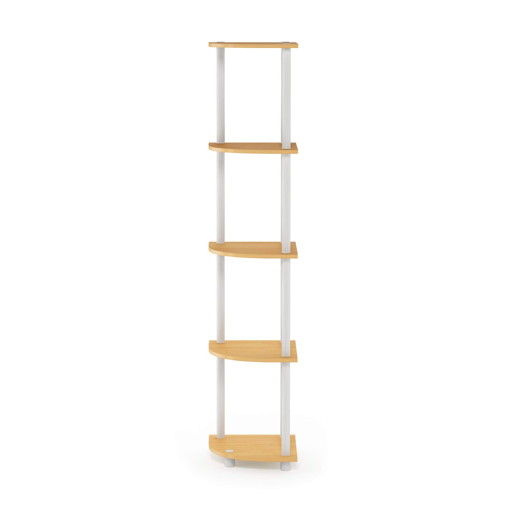 Furinno TURN-N-TUBE Corner Shelf, 5-Tier Corner Bookshelf, Open Storage Shelves, for Organization and Storage, Living Room, Home Office, Garage, Bedroom, Beech