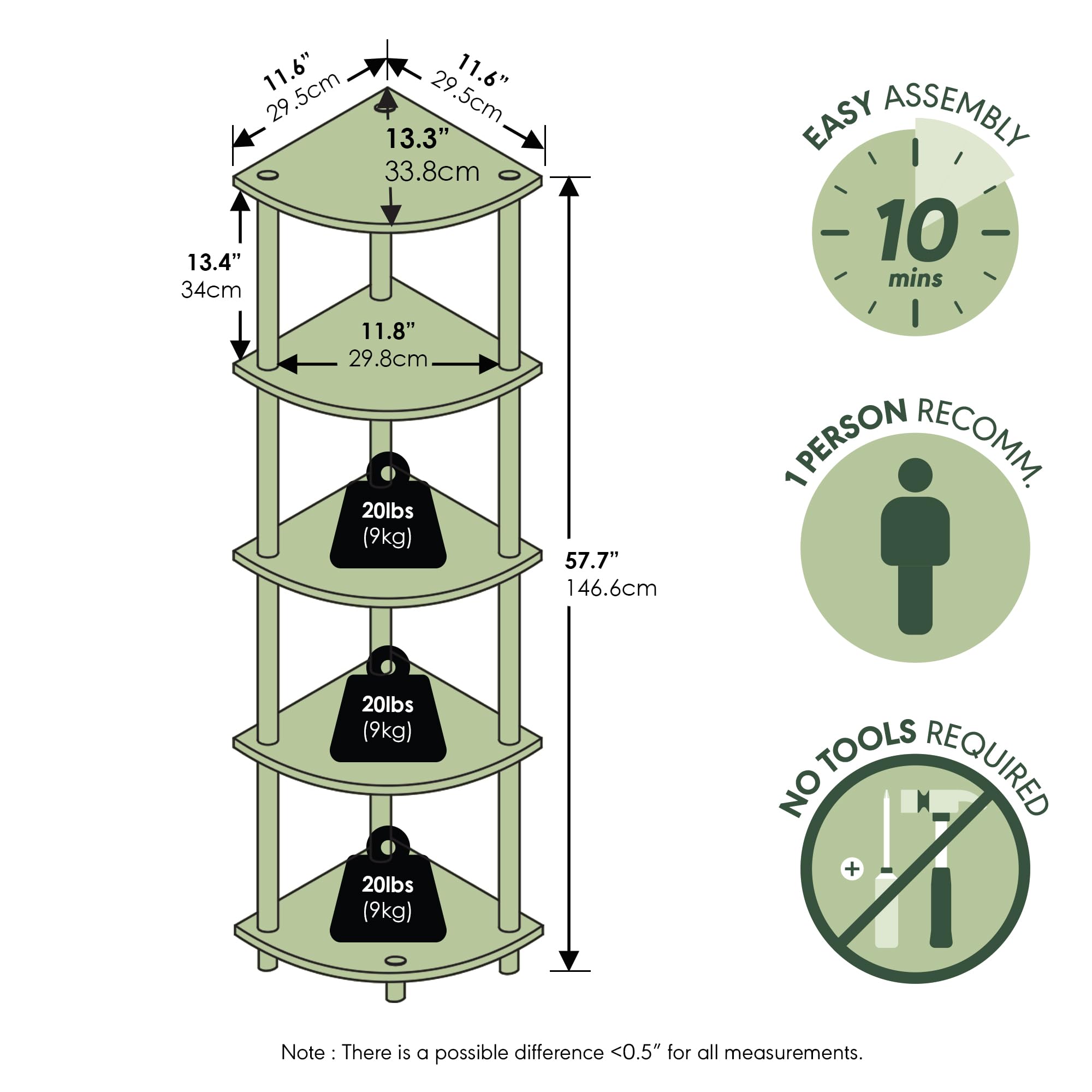 SPACE-SAVING CORNER DESIGN: This corner shelf features a compact vertical profile that fits snugly into corners, making it ideal for apartments, dorm rooms, and small living areas