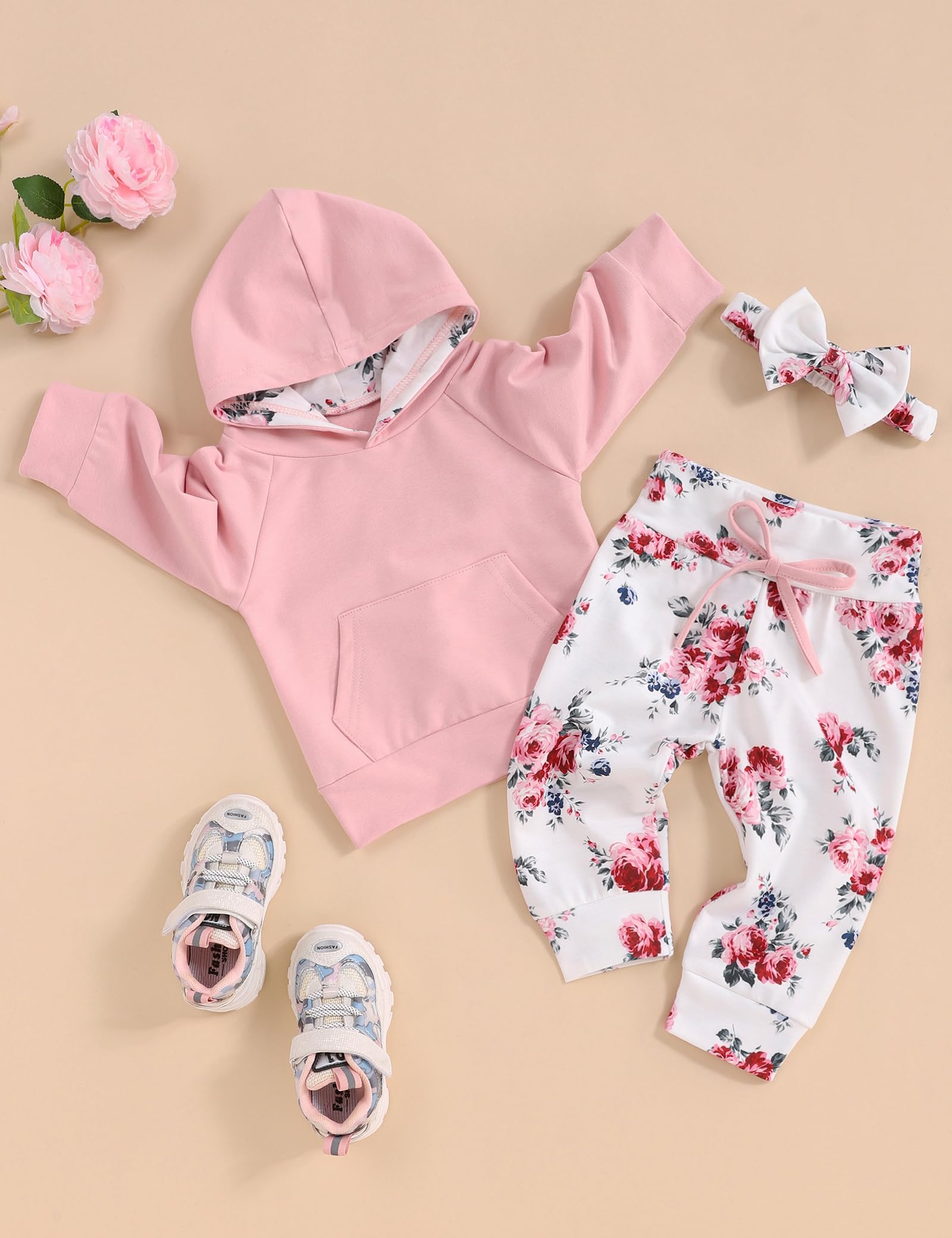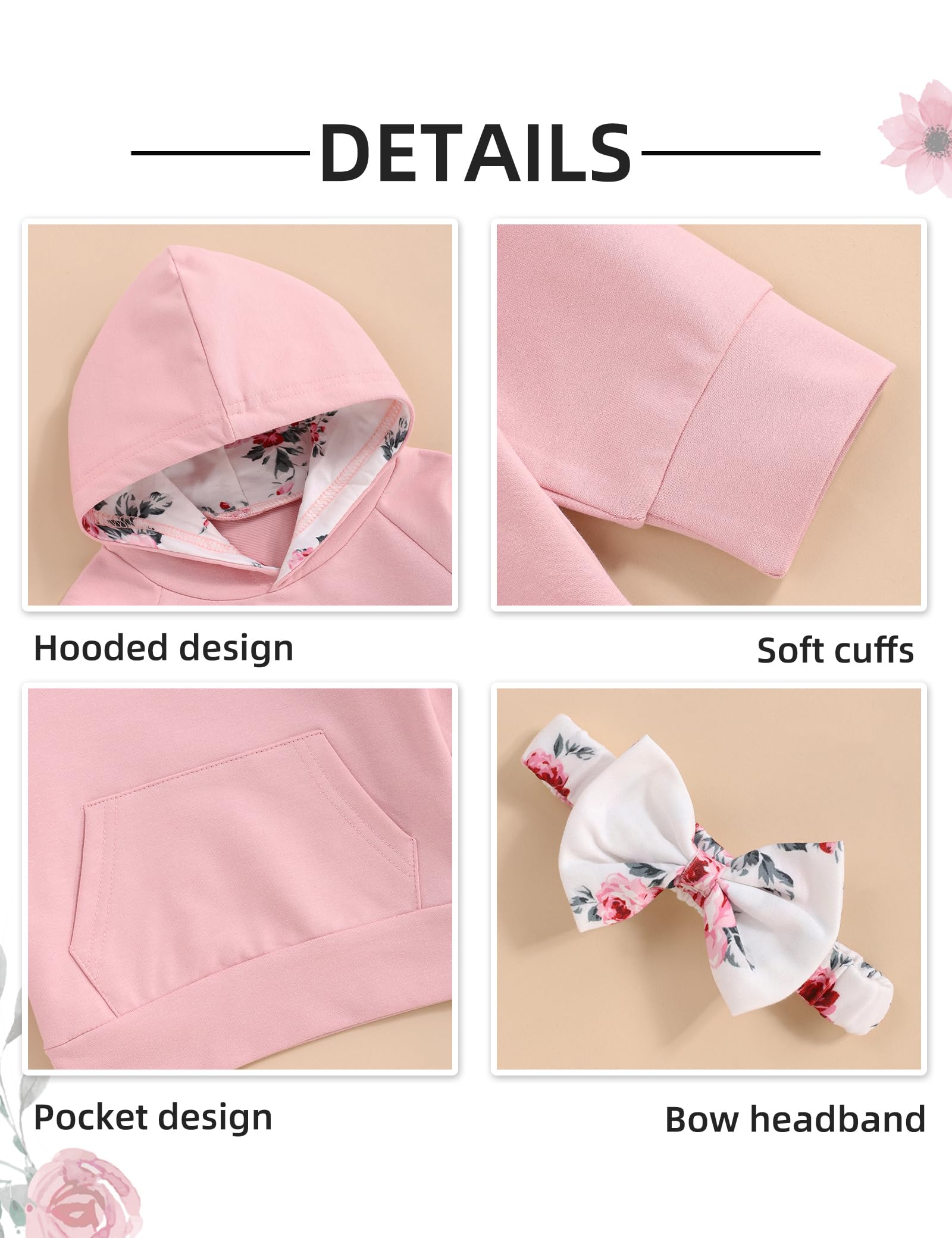 ❀ Floral pattern hoodie with kangaroo pocket design, variety of colors and prints,elastic waistband pants. Cute toddler floral outfit set will makes your baby girls more lovely.