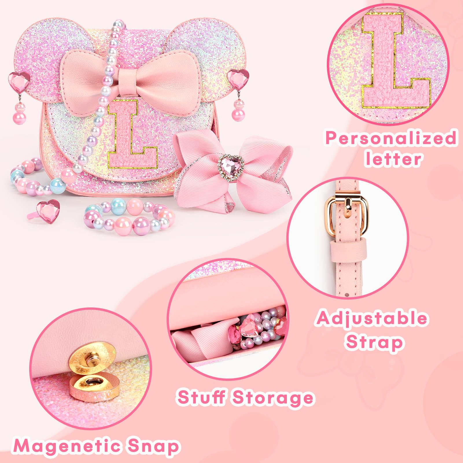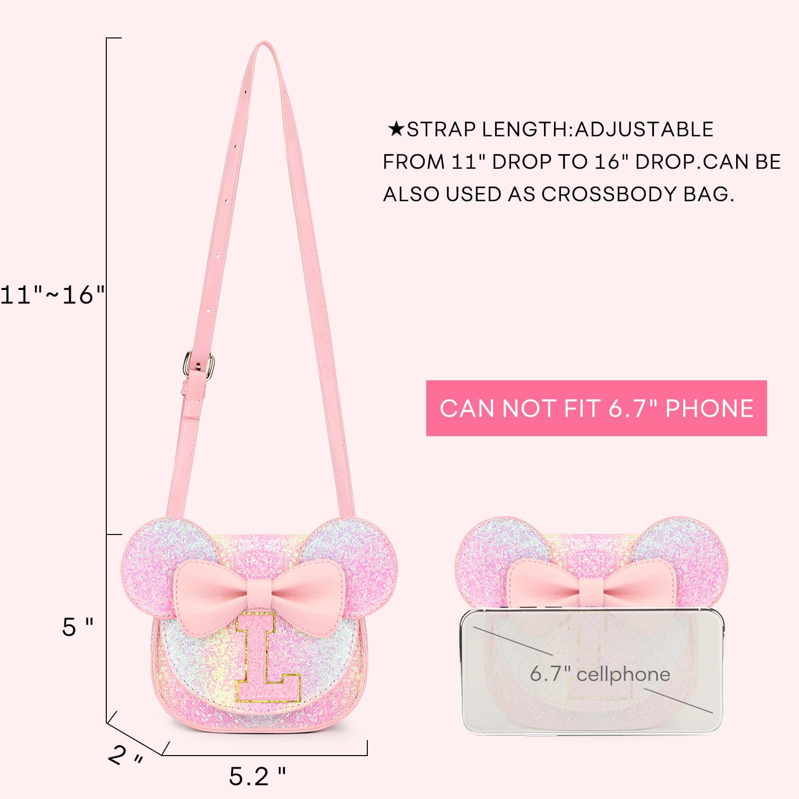 Cute Shape: Patched with a letter,This little girl purse would be a personalized birthday gifts for 6 year old girls or under. Kids would love its mouse ears and bow. Tip: Please select the letter you want in the STYLE