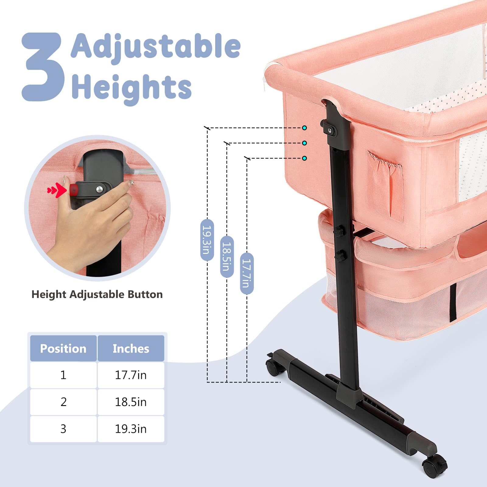 Enhanced Safety and Comfort: The Baby Bassinet is made with a safe and breathable mesh material, providing optimal airflow and visibility for your baby. It also includes an adjustable height feature, allowing you to align it perfectly with your own bed.