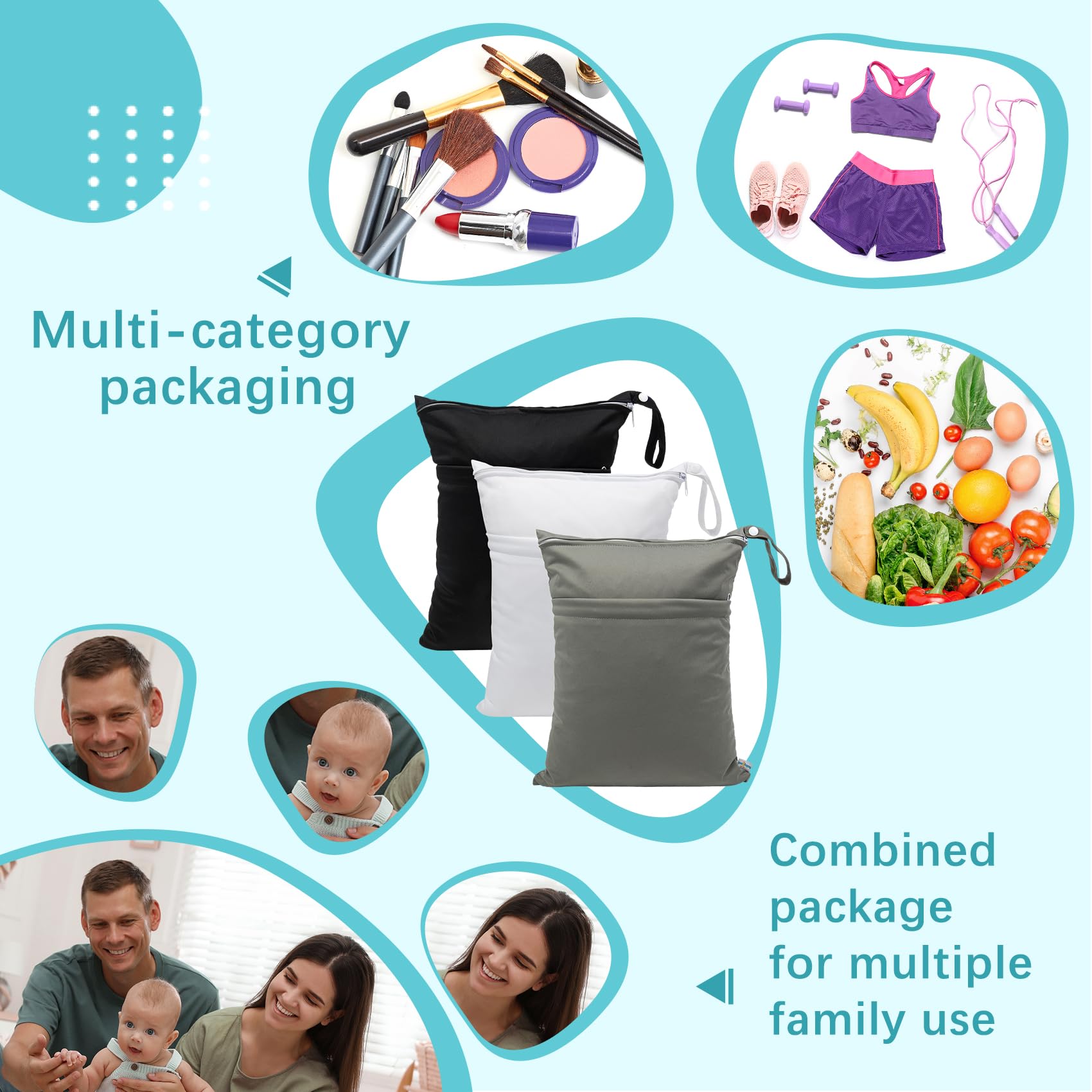 Multi-Function: You will receive 3 pack wet bags, which size is They are perfect for preserving cloth diapers and other baby products, and they can also be used as swimsuit bags, bikini bags, bathing suit bags, travel bags, gym bags, storage bags, cosmetic bags, handbags, wash bags, organizer bags, breast pump parts bags, even as picnic bags. They are ideal for baby shower gift, get yours today!