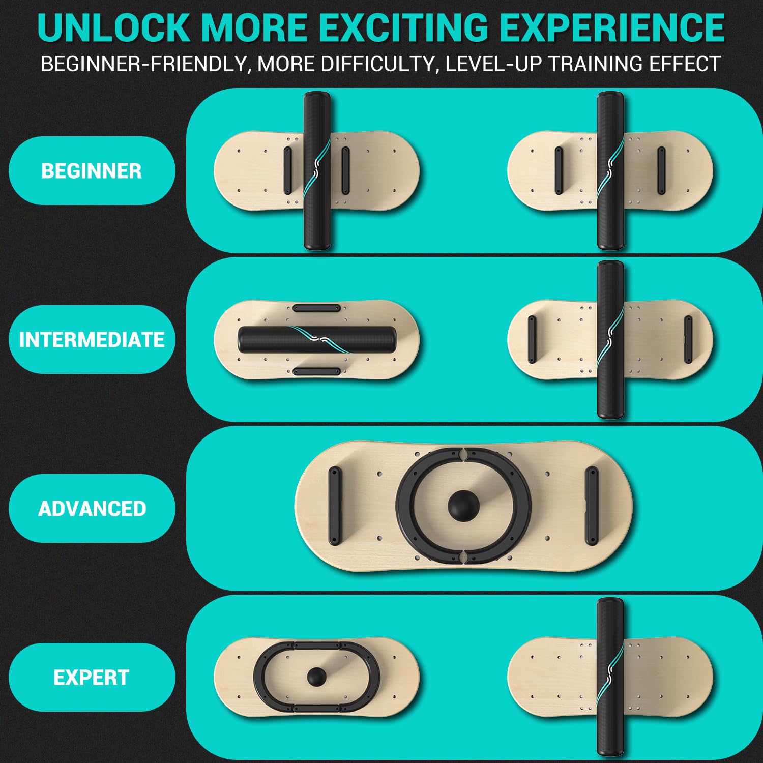2-in-1 Versatile Set: Each set comes with 1 balance board, 1 roller and 1 ball that provides 7 unique challenge modes, allowing you to progressively work your way up to improve your strength and balance. Plus, the 4 individual magnetic removable stoppers ensure smooth switch between modes and convenient disassembling.