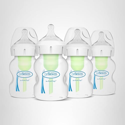 Dr. Brown’s Natural Flow Anti-Colic Options+ Wide-Neck Baby Bottles 5 oz/150 mL, with Level 1 Slow Flow Nipple, 4 Pack, 0m+