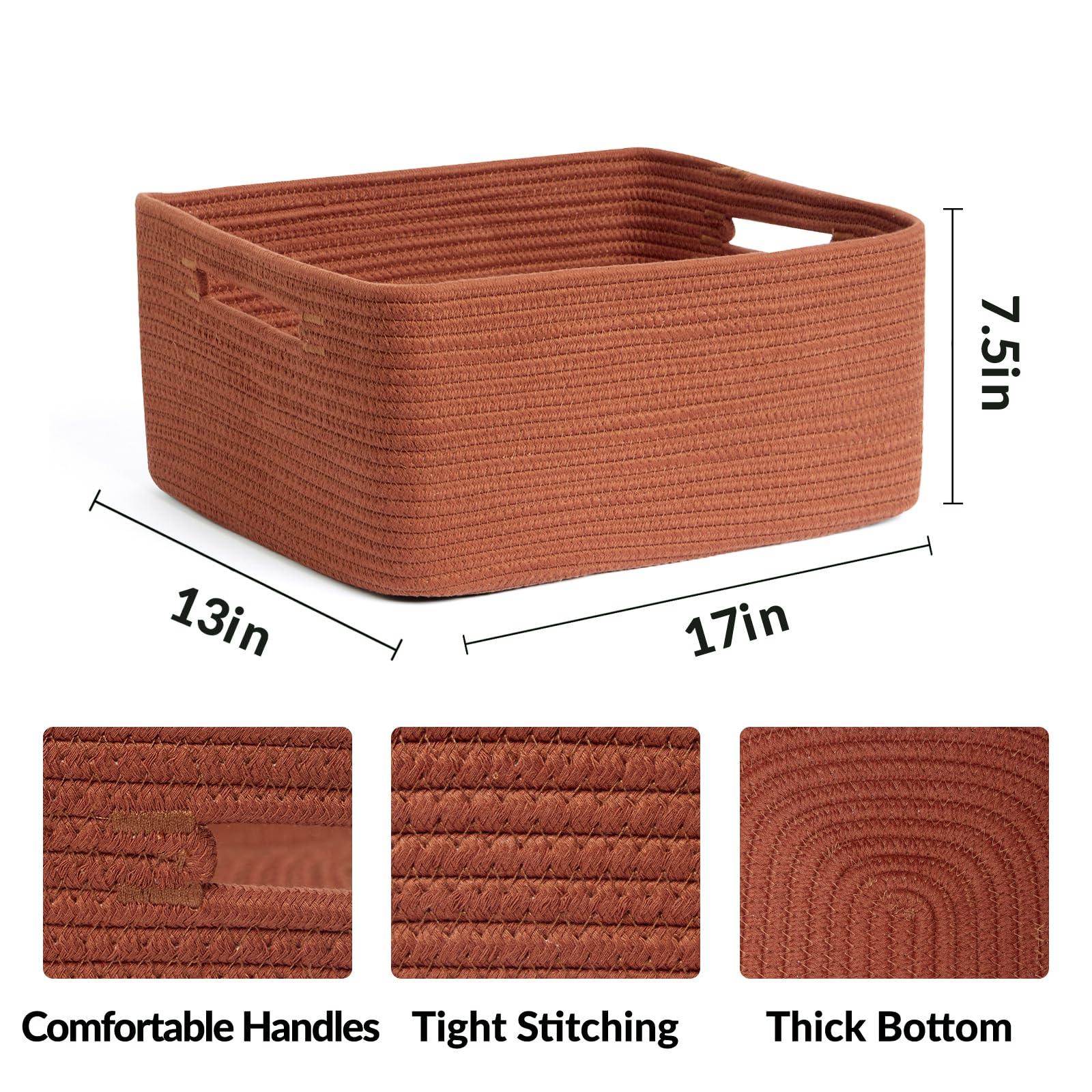 [ Large Capacity ]: This 3-pack rectangular storage basket measures 17 x 13 x 7.5 inches, offering ample space and easy access. Ideal for organizing clothes, baby items, blankets, towels, snacks, toys, diapers, and more