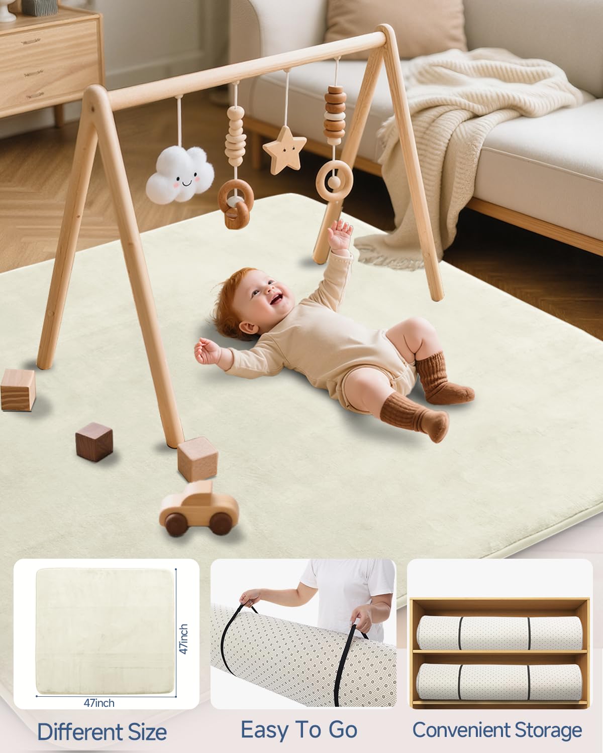 Thick Baby Play Mat for Floor,Padded Foam 47x47 Playpen Mat,Ultra Soft Support & Plush Feel Nursery Rug,Non Slip for Toddler,Infants,Kids Play,Yoga,Baby Crawling,Tummy Time (Beige)