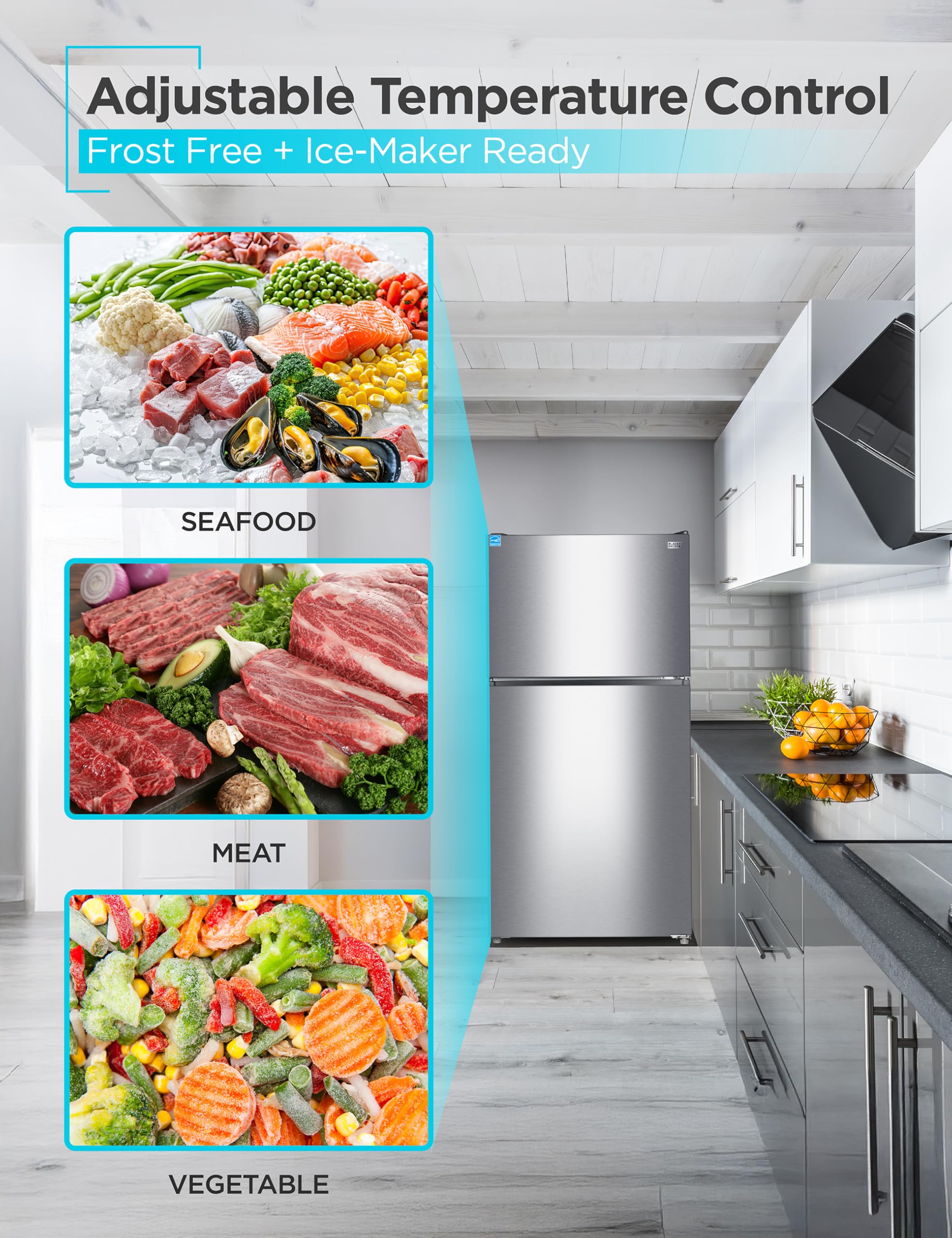 Adjustable Temperature Control: Maintain optimal freshness with the adjustable temperature control feature. Set the perfect cooling levels for both the refrigerator and top freezer sections