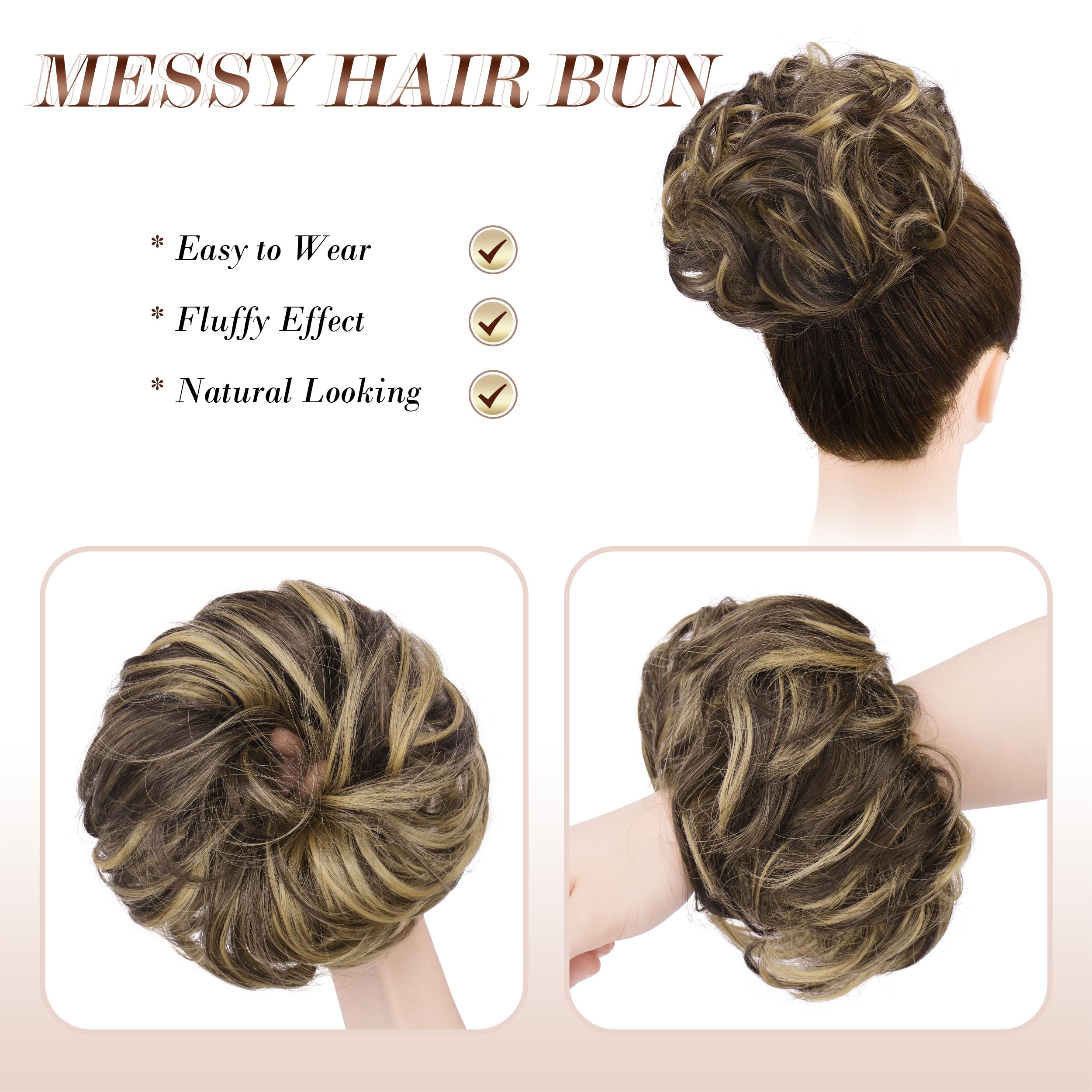 LARGE SIZE: This large-sized messy bun hairpiece weighs 1.94 oz per piece, ideal for adding instant volume and fullness to your bun or ponytail. FESHFEN offers two size options to suit a variety of styling needs.