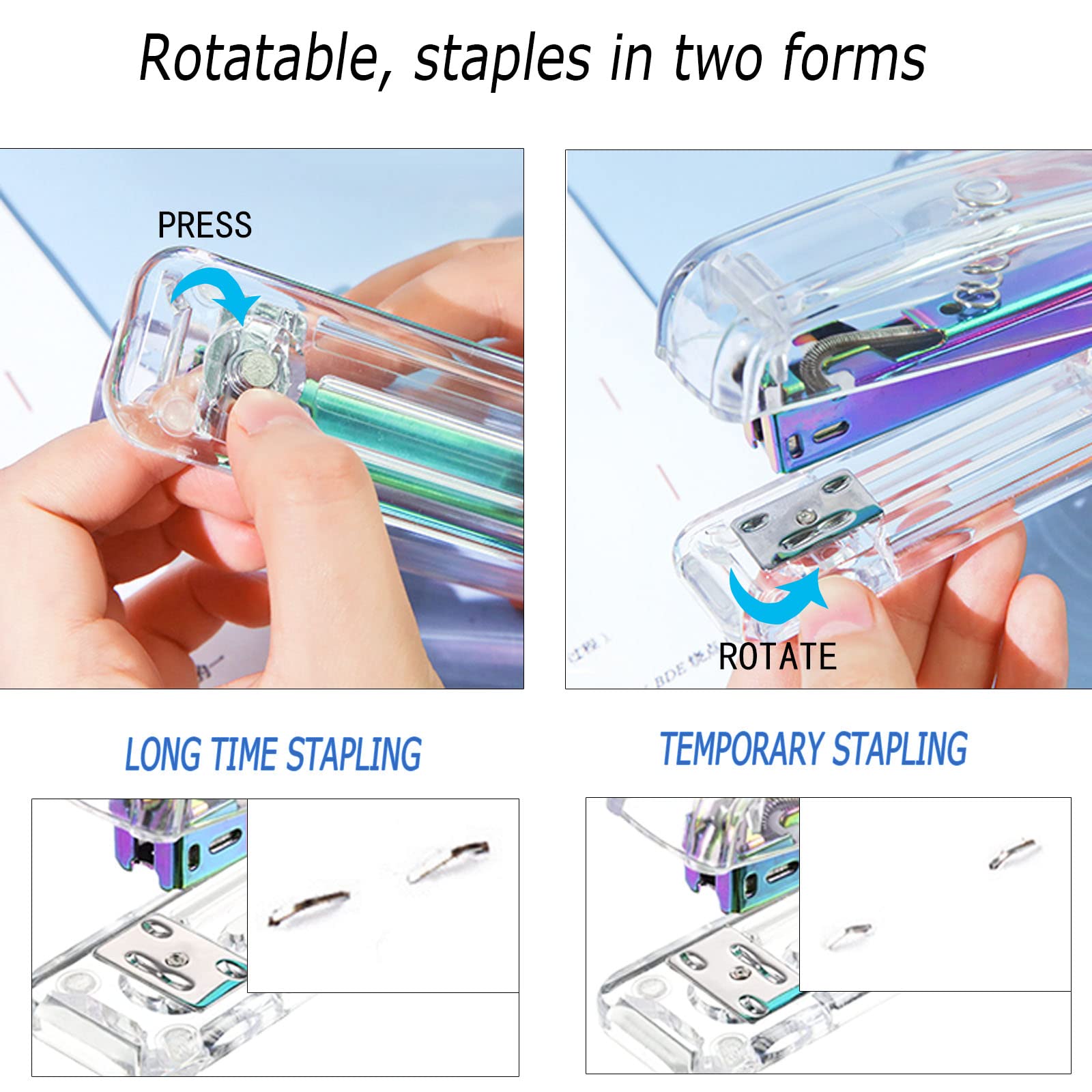 Famassi Dream Color Acrylic Stapler and Tape Dispenser Set, Office Supplies with Tape Dispenser, Stapler Remover, 2 Ballpoint Pen, Scissor, Binder Clips, Paper Clips and 1000pcs Staples