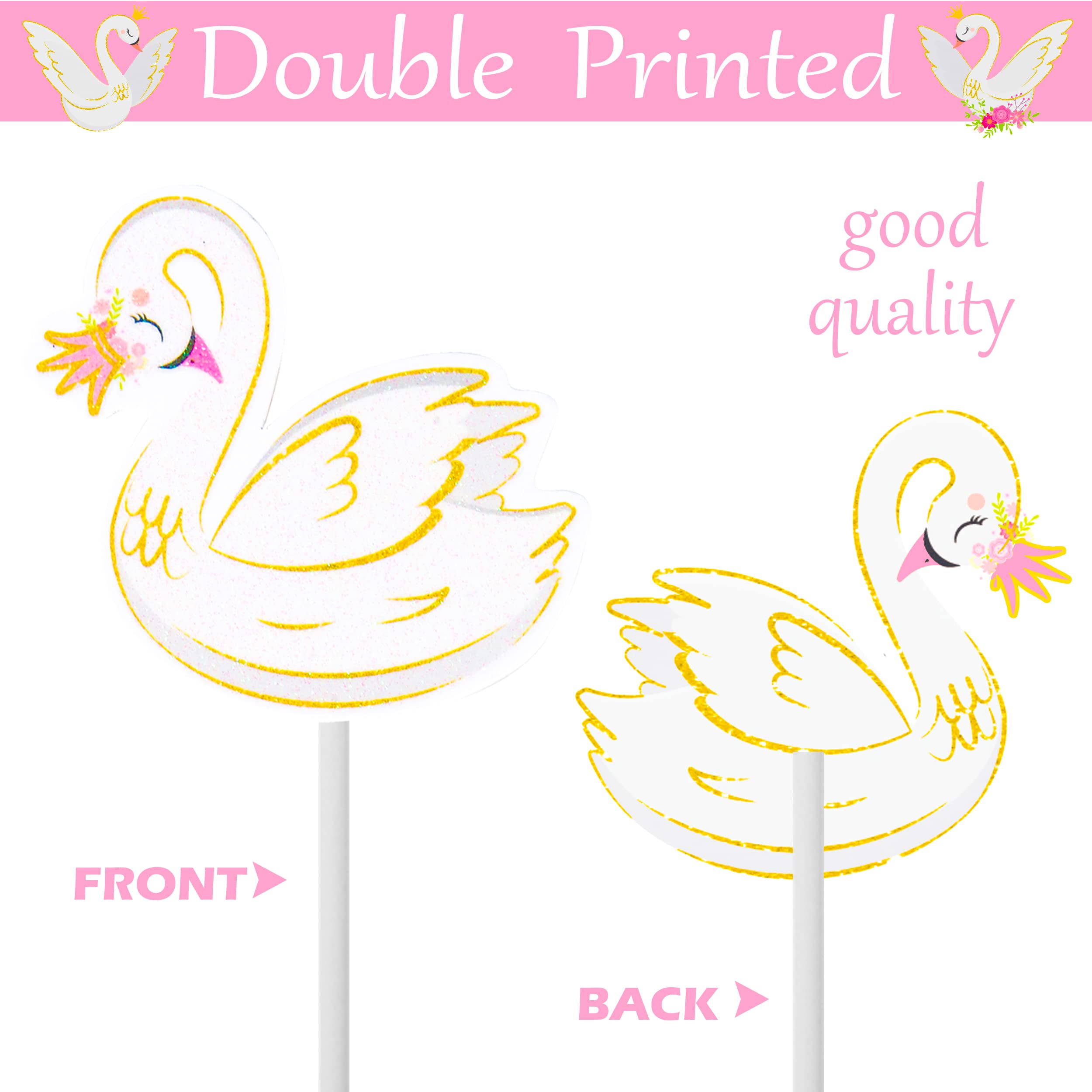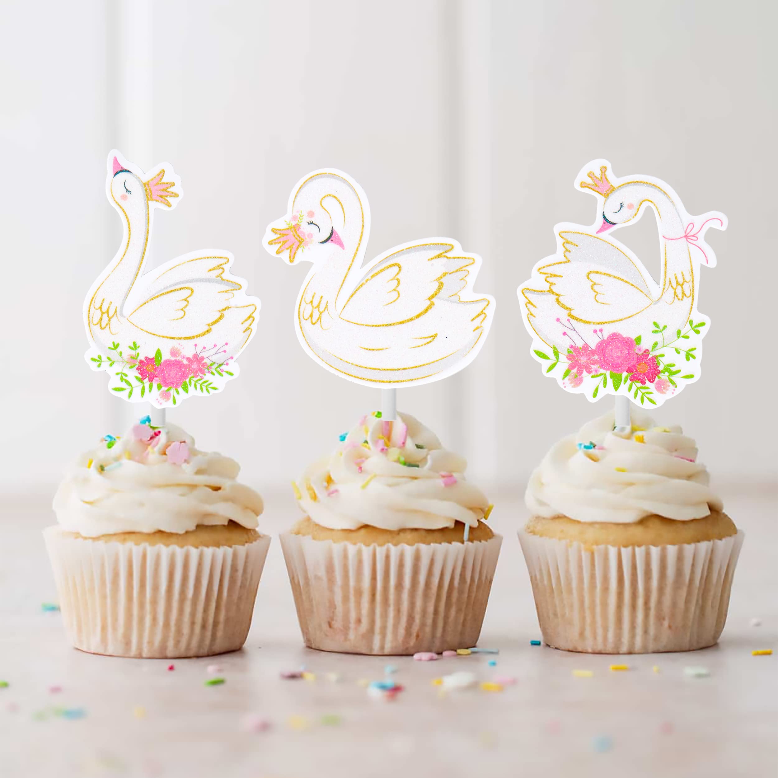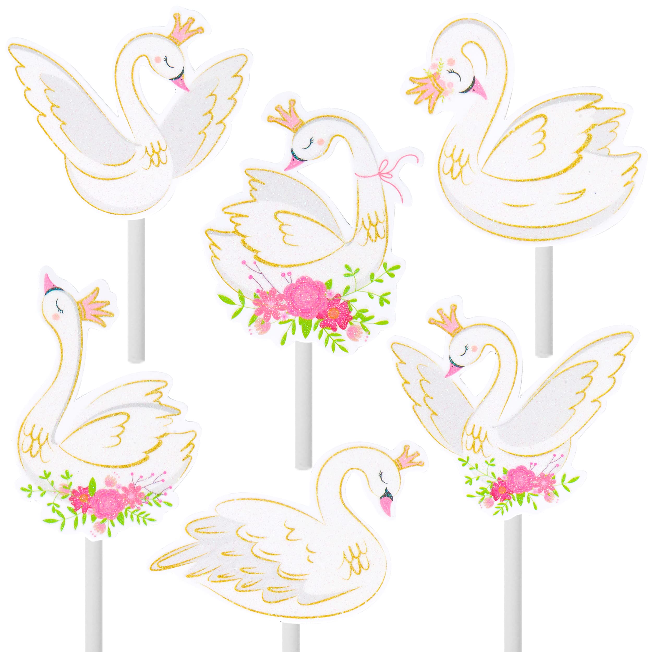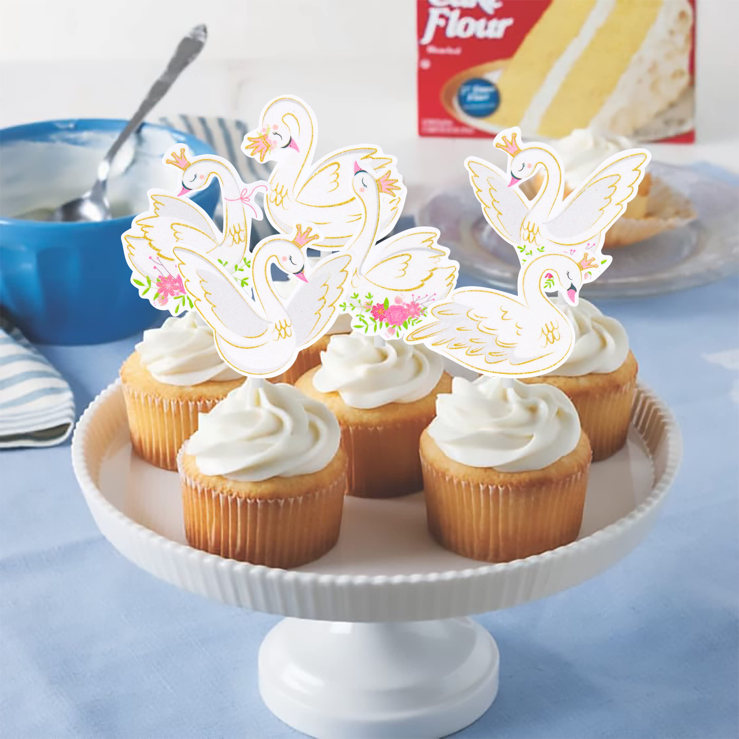 【24pcs white swan cupcake toppers】You will get 24pcs swan party cupcake toppers in 6 patterns. Open the package directly and use it to decorate your birthday cupcakes. It will make your cake look more delicious.