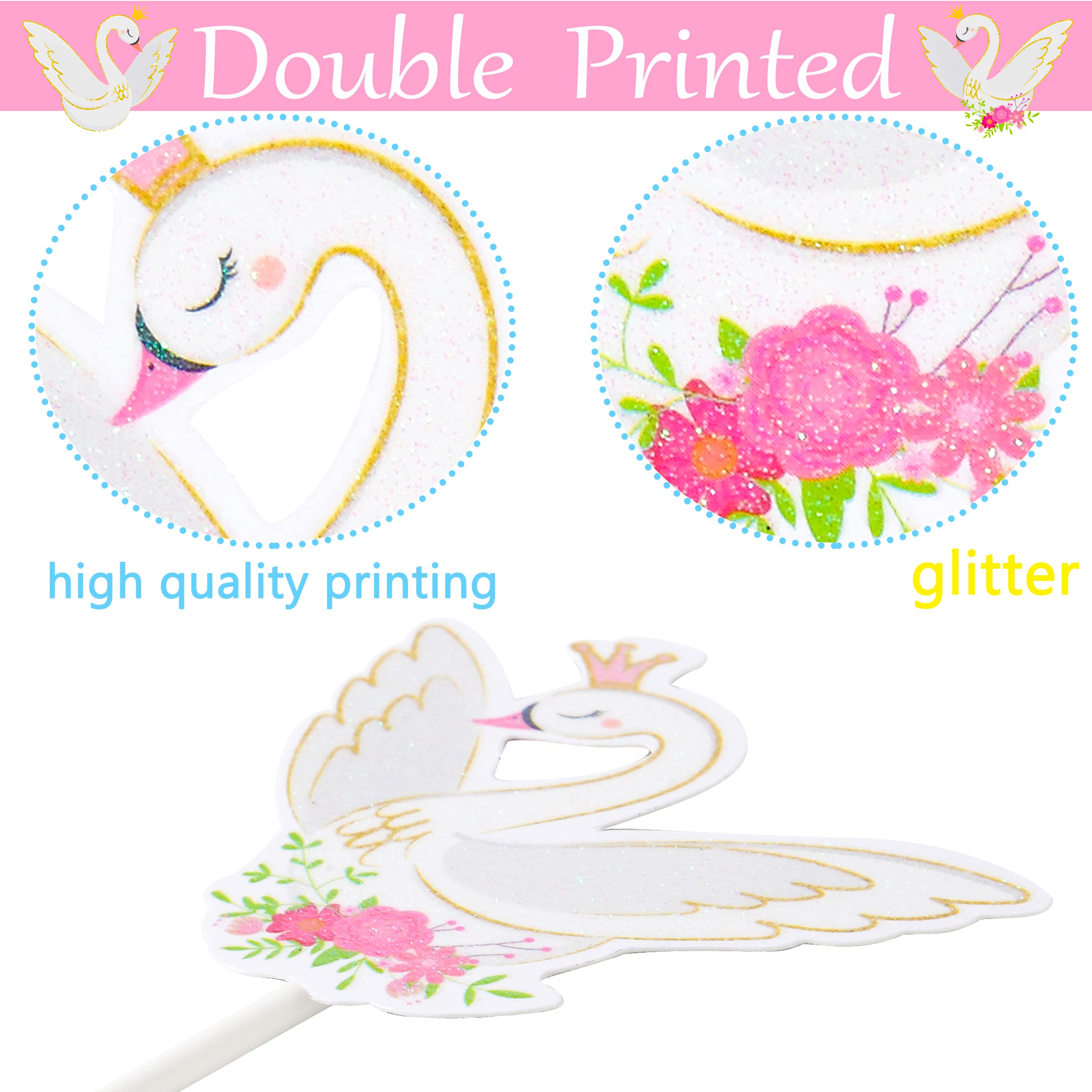 【Swan party supplies】White swan cupcake picks is made of food-grade toothpick and thick-sparkling materials. High quality swan birthday cupcake topper is prepared particularly for celebrating kids swan themed birthday party, which is sure to offer the right amount of sparkle for your event!