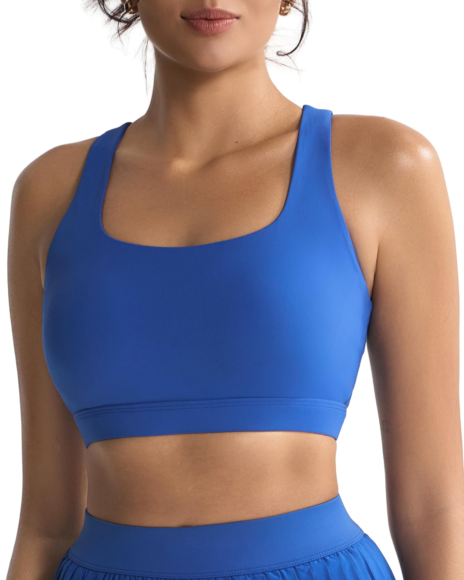 ✅ 【SWEAT OUT IN STYLE! 】: Made from a flexible four-way stretch fabric that supports your body as you move. Enjoy the freedom of movement as the open back styles aim to keep you comfy and cool while you bring on the heat! Running sports bras for women with wide waist band for that support we all need!