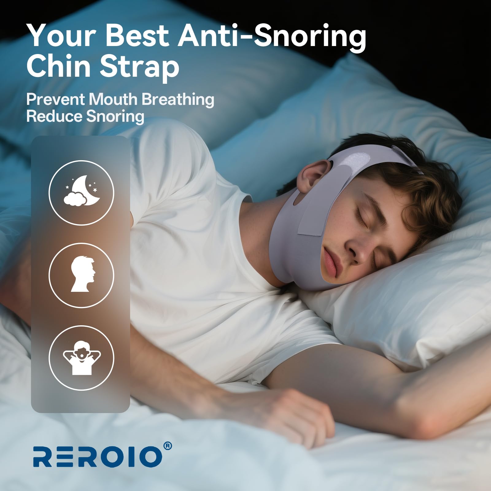 Powerful Anti-Snoring Solution:When you sleep, relaxed muscles can cause the mandible to move backward, narrowing the airway and creating vibrations. Our REROIO Anti Snore Chin Strap gently pulls the mandible forward, securing it in place and widening the airway while closing your mouth. This effectively reduces airflow-induced vibrations, minimizing snoring
