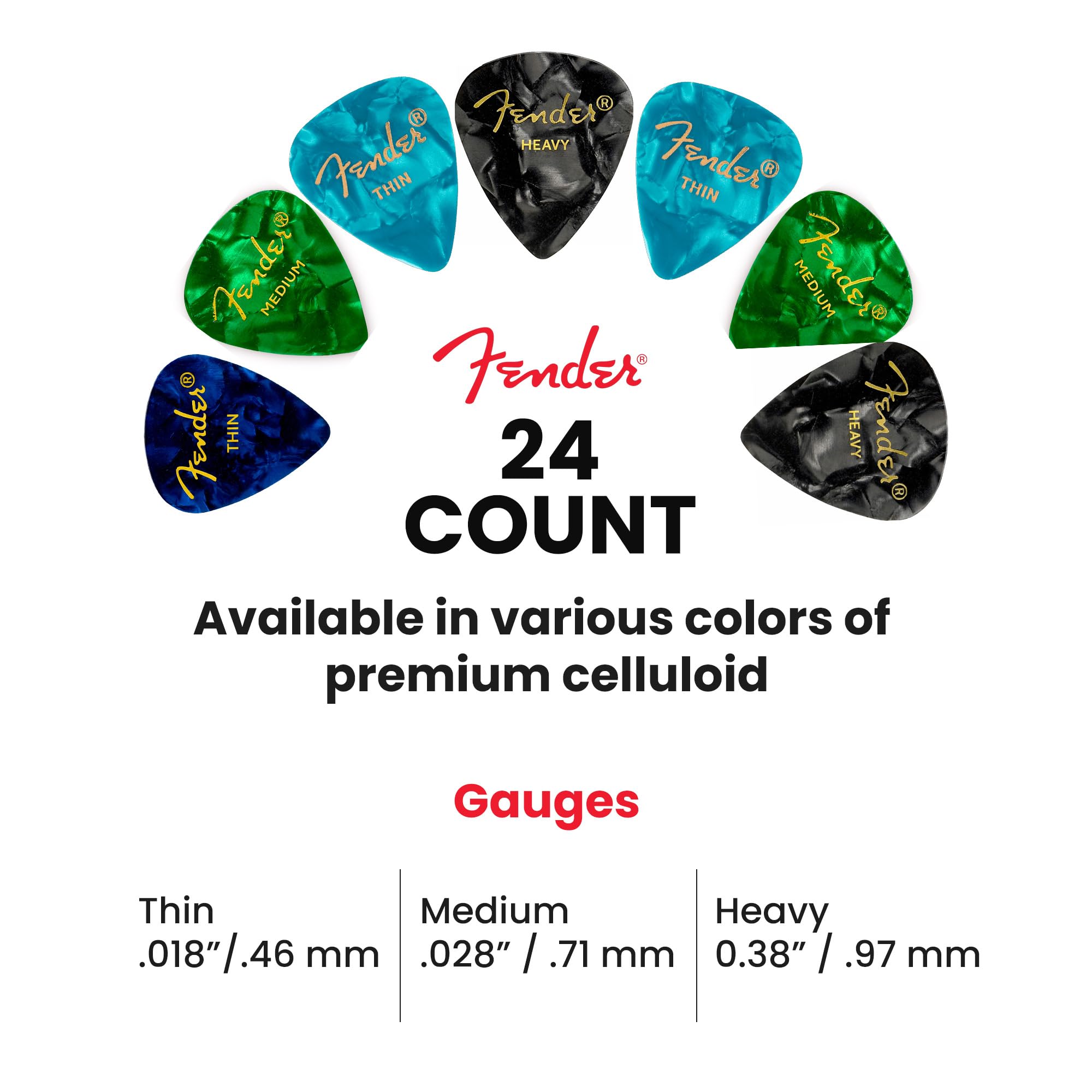 CLASSIC FENDER CELLULOID TONE: Premium celluloid provides a warm, round sound with smooth string release, natural flexibility, and reduced pick noise for expressive playing